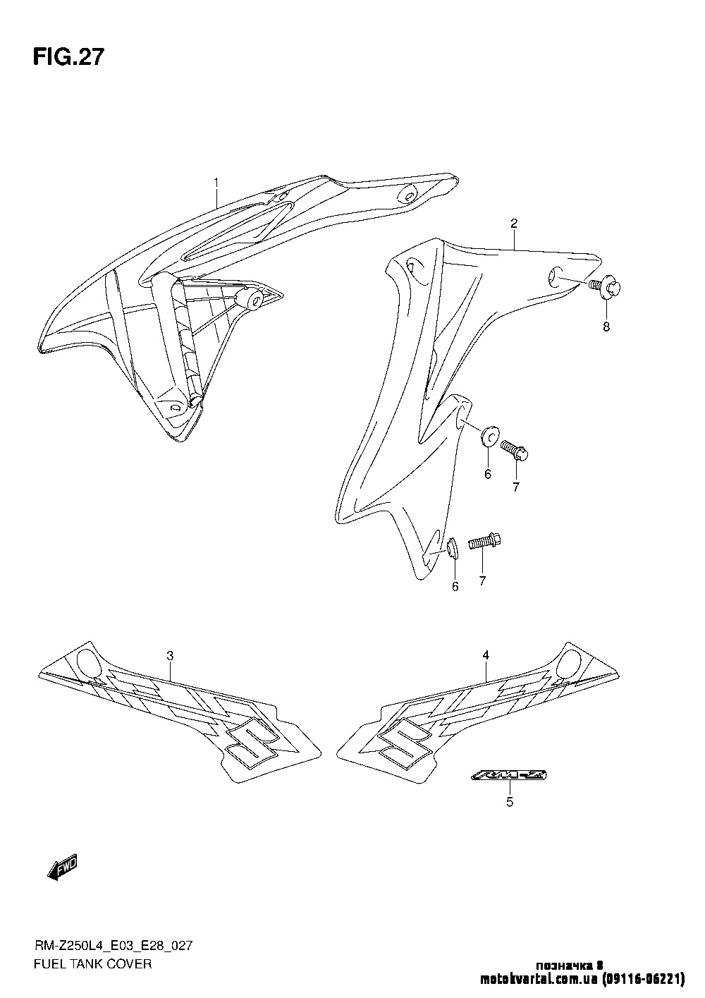 - Мотоцикл / 2012 / RM-Z250 / Fuel tank cover