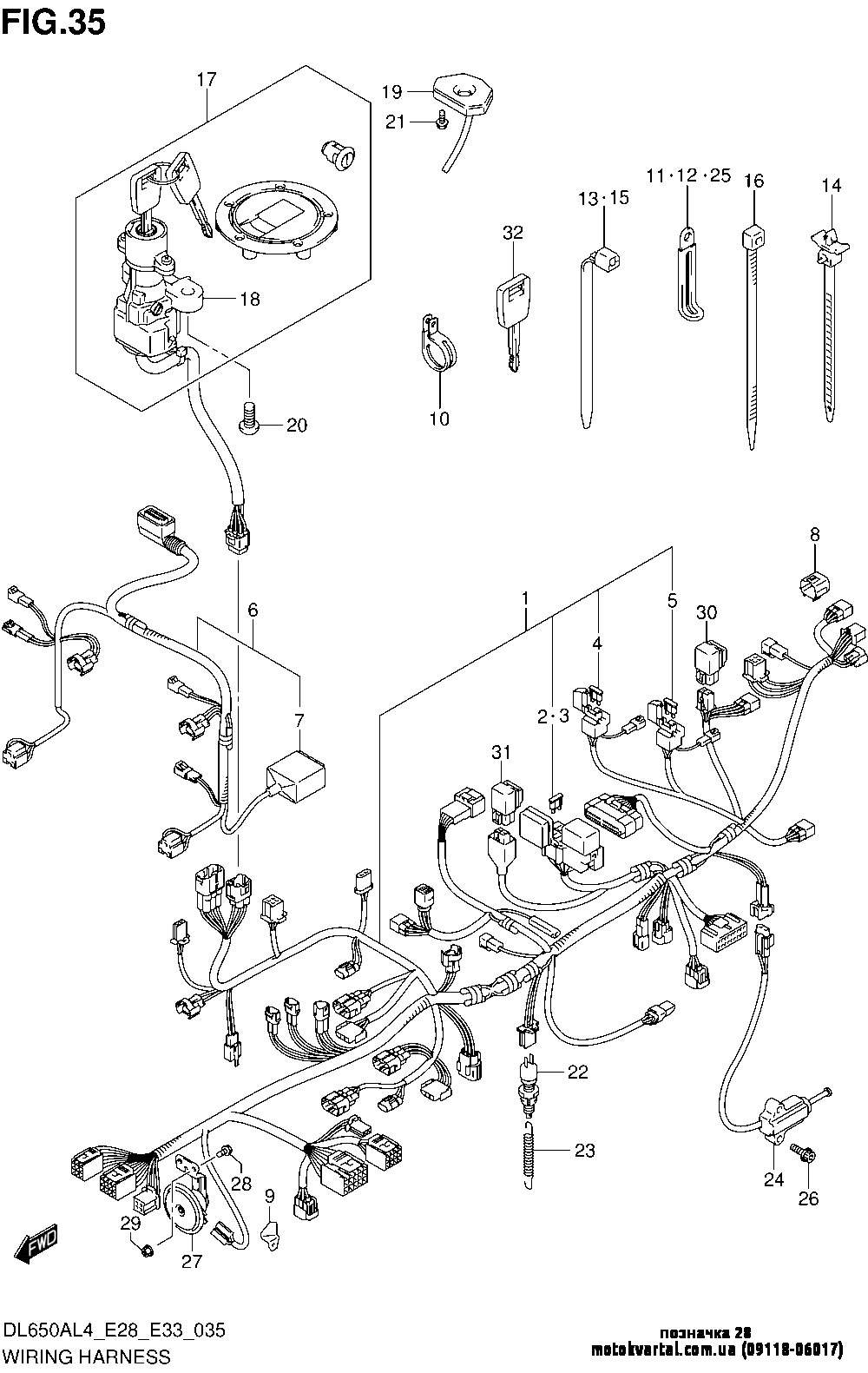 - Мотоцикл / 2014 / DL650A / Wiring harness (dl650al4 e28)