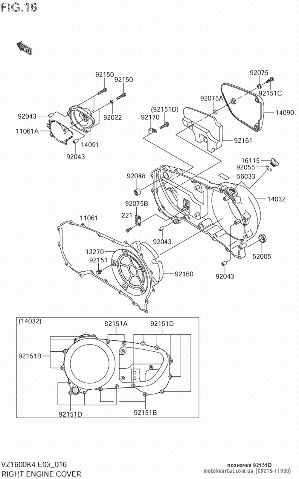 - Мотоцикл / 2004 / VZ1600 MARAUDER 2004 E33; M95 2005 E33 / Right engine cover
