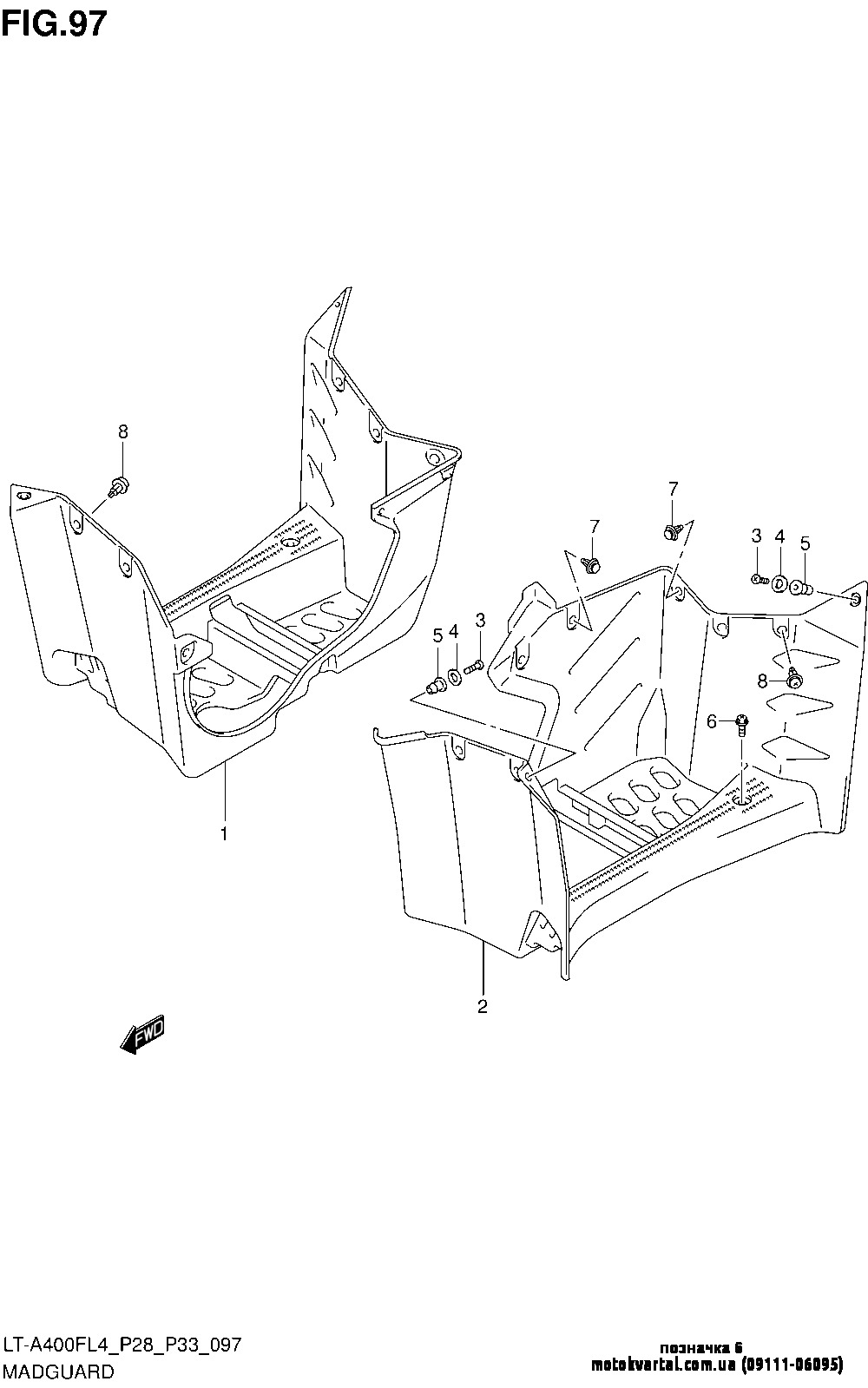 - Квадроцикл (ATV) / 2008 / LT F400 / Footrest mudguard