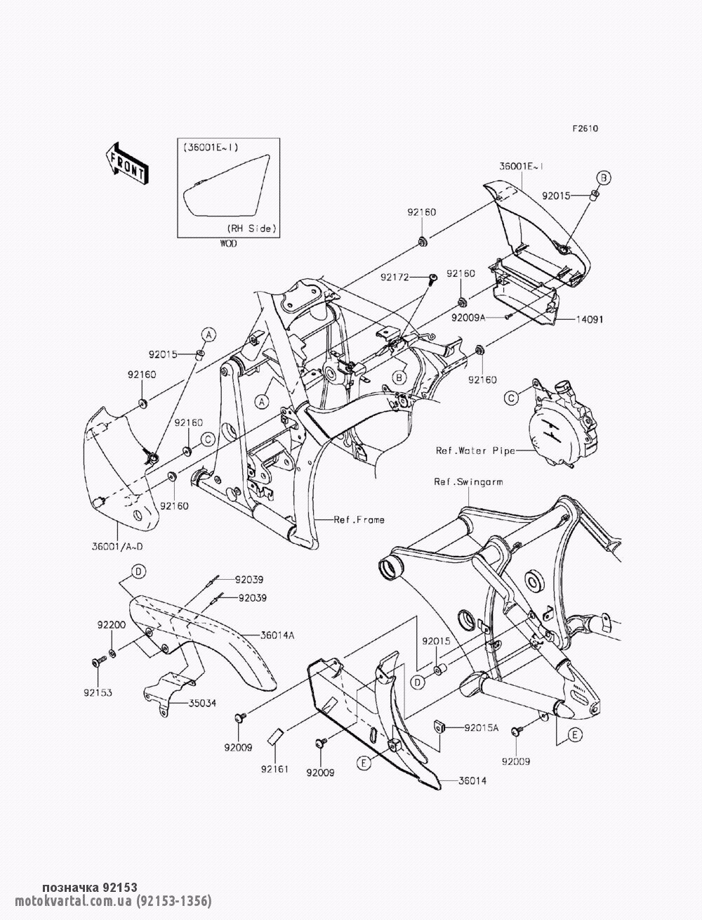 - Мотоцикл /2010 / Ninja ZX-10R (ZX1000-FAF) / Side covers_chain cover