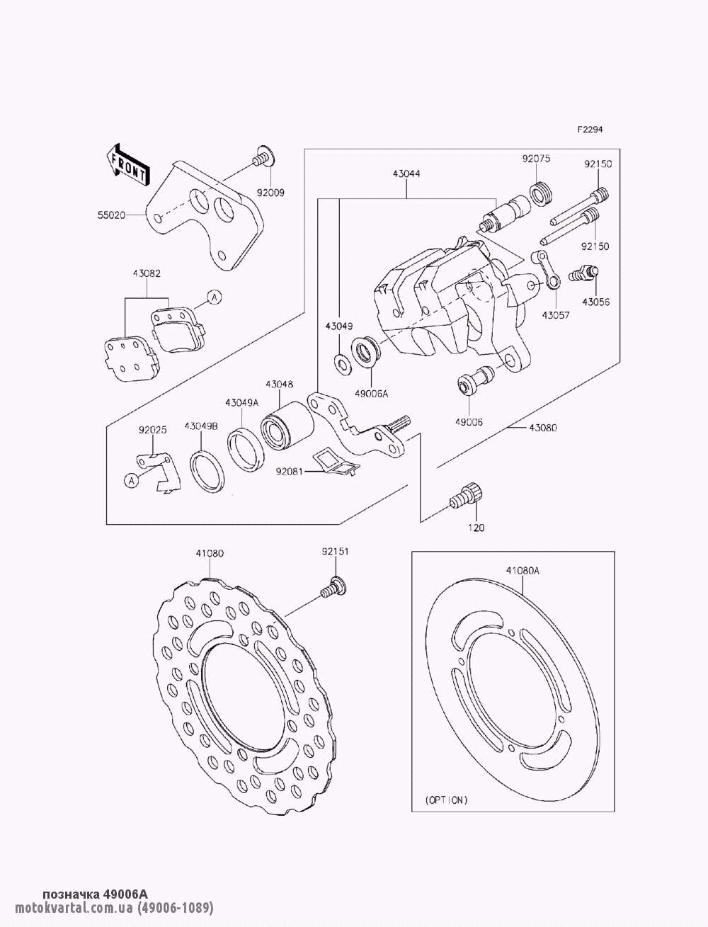 - Квадроцикл (ATV) /2000 / Prairie 300 4X4 (KVF300-A2) / Front brake