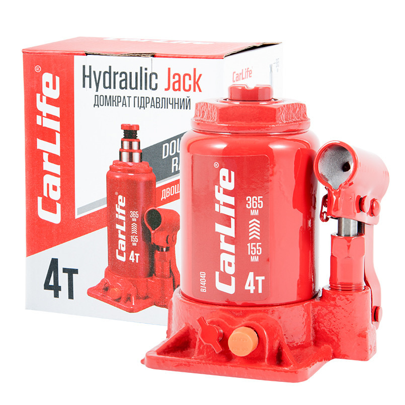 Домкрат гідравлічний двоштоковий CARLIFE 4т, висота підйому 155-365мм, картона упаковка