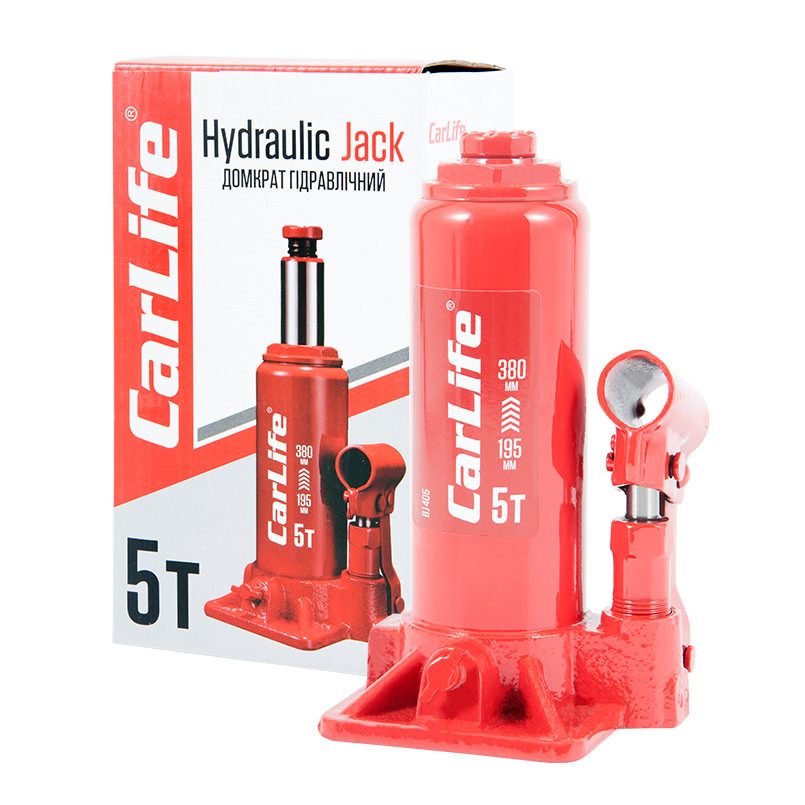 Домкрат гідравлічний CARLIFE 5т, висота підйому 195-380мм, картона упаковка