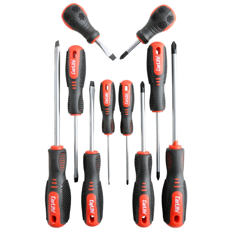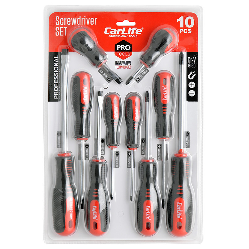Набір викруток Carlife WR6910 включає 10 коротких і стандартних інструментів для демонтажу і монтажу вузлів кріплення на різних виробах, агрегатах і пристроях. Такий набір універсальний і може використовуватись у багатьох сферах. Наприклад, стане в нагоді в автосервісі, на станції технічного обслуговування, на виробництві та в автомайстерні. Викрутки оснащені насадками PHILLPS та SLOTTED.