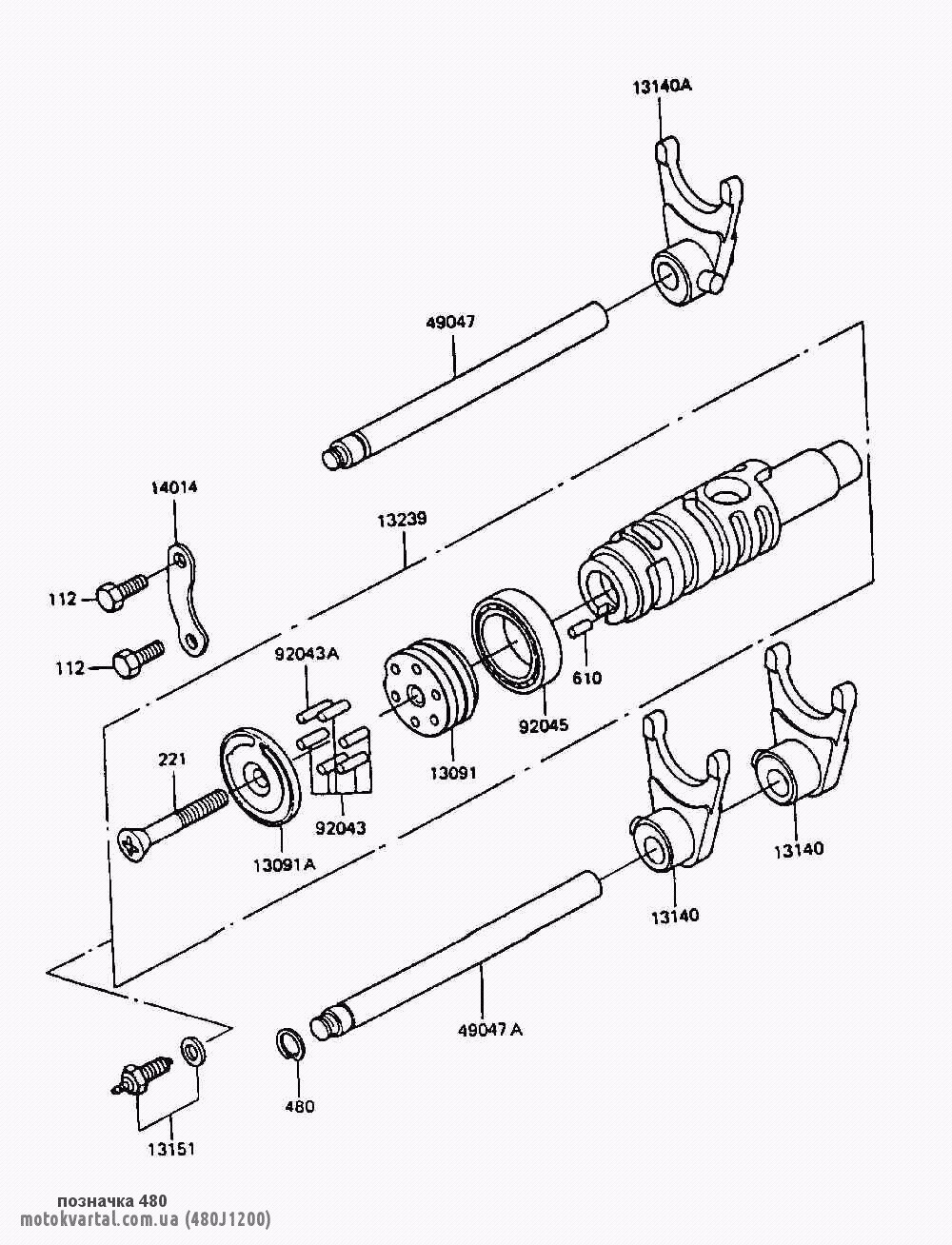 - Мотоцикл /1988 / Police 1000 (KZ1000-P7) / Change drum_shift fork