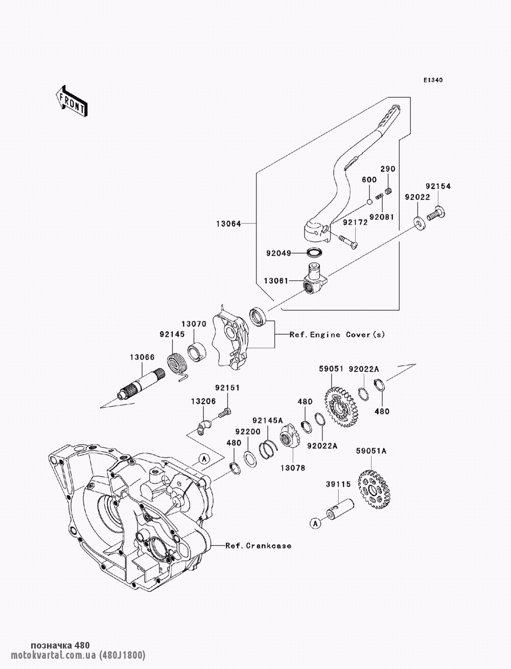 - Мотоцикл /2009 / KX450F (KX450-E9F) / Kickstarter mechanism