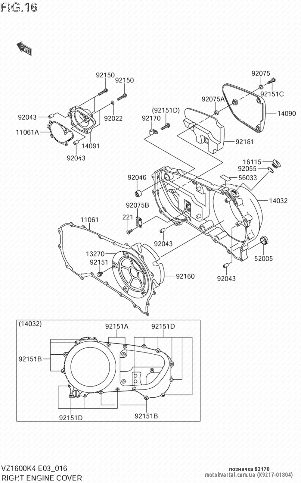 - Мотоцикл / 2004 / VZ1600 MARAUDER 2004 E33; M95 2005 E33 / Right engine cover
