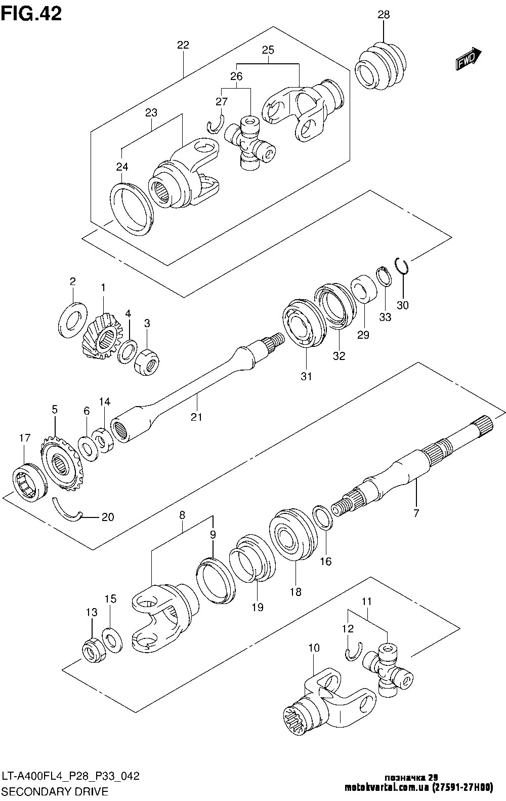 - Квадроцикл (ATV) / 2014 / LT A400FZ / Secondary drive (lt-a400fzl4 p28)