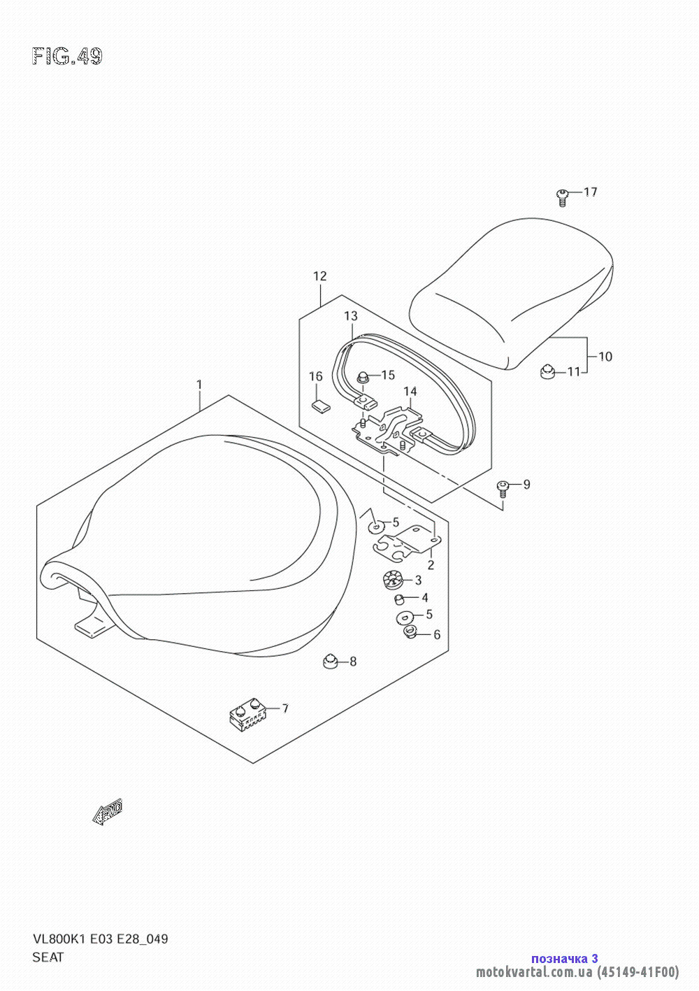 - Мотоцикл / 2003 / VL800Z VOLUSIA 2001-2004; C50TZ 2005 / Seat (vl800k1_k2_k3_k4_k5)