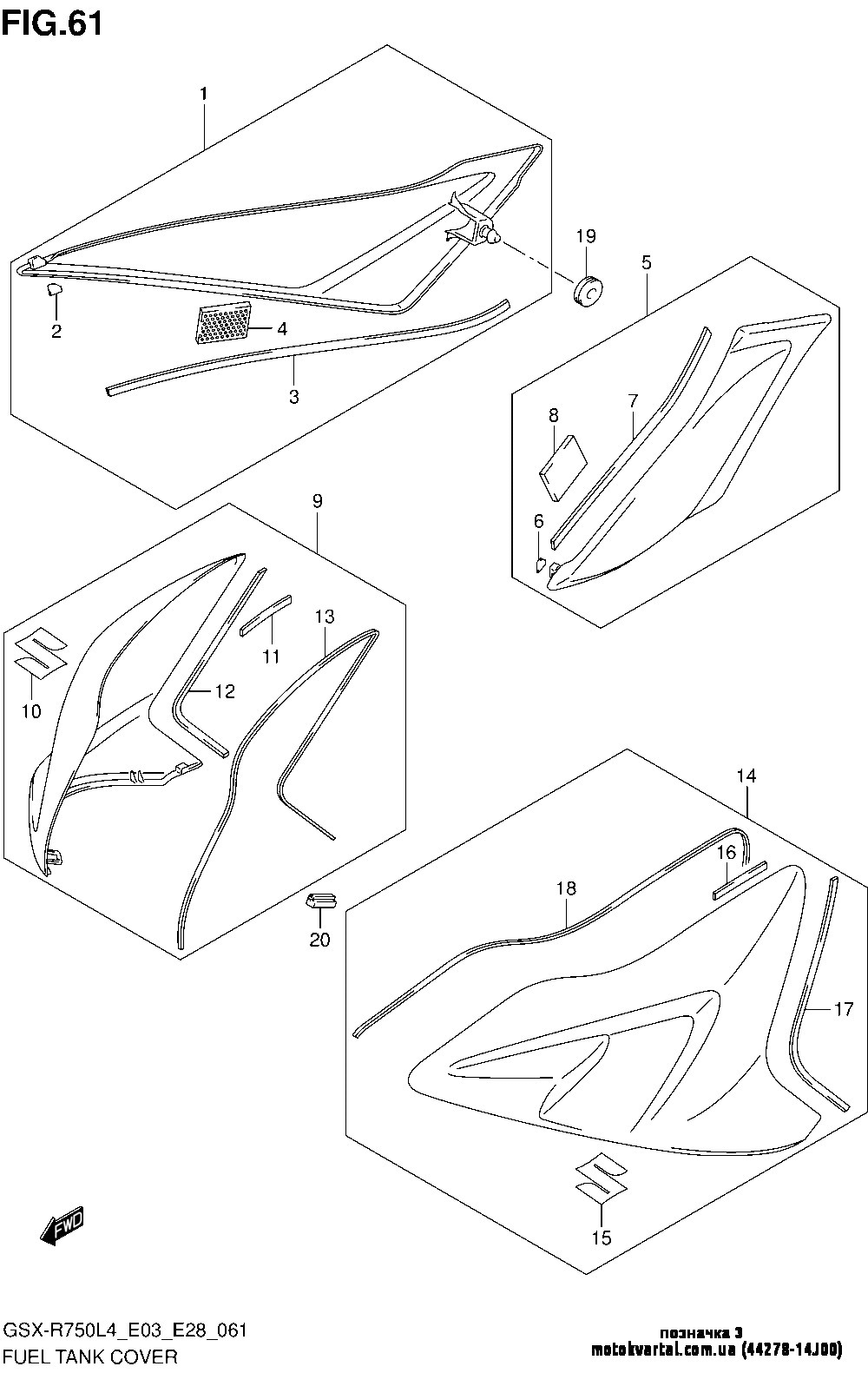 - Мотоцикл / 2013 / GSX R600 / Fuel tank cover (gsx-r600l3 e03)