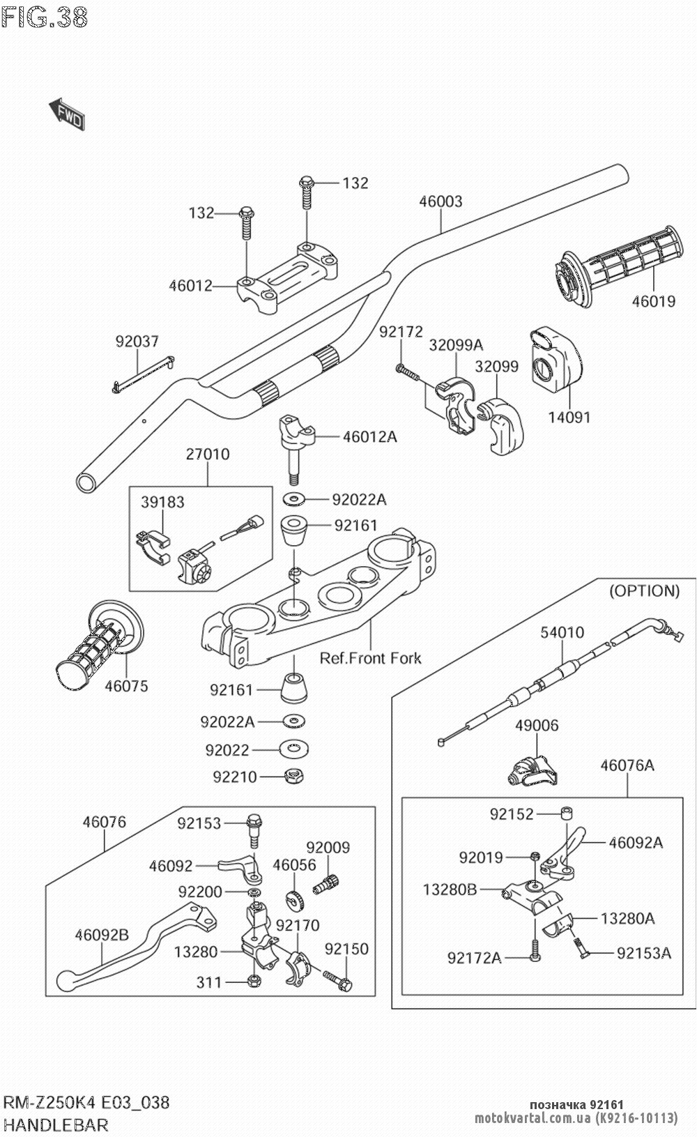- Мотоцикл / 2004 / RM-Z250 2004 / Handlebar