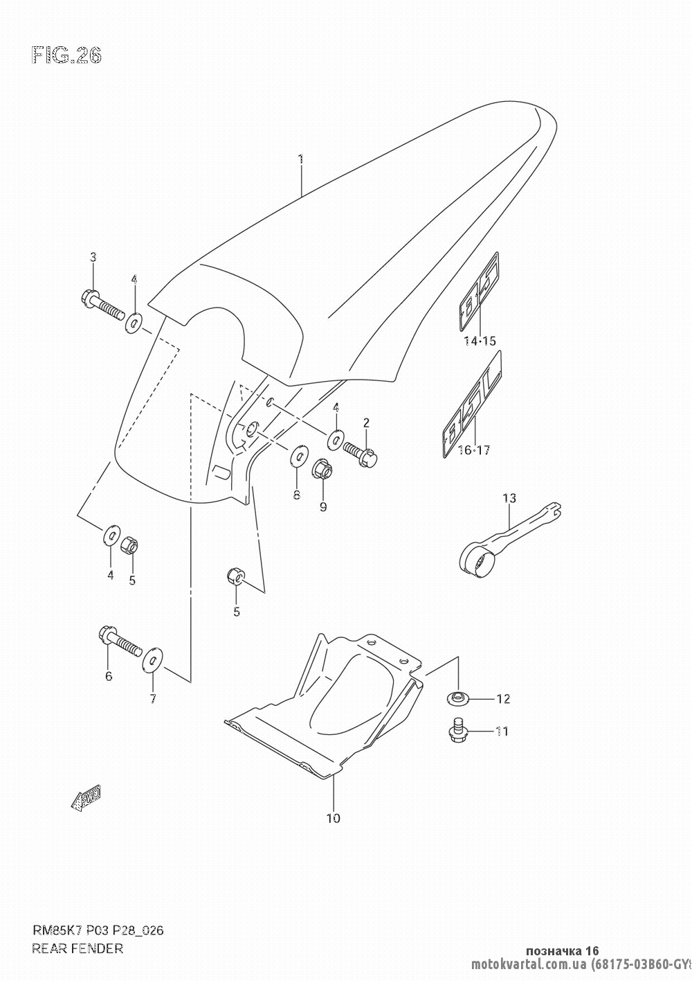 - Мотоцикл / 2012 / RM85L / Rear fender (rm85l)