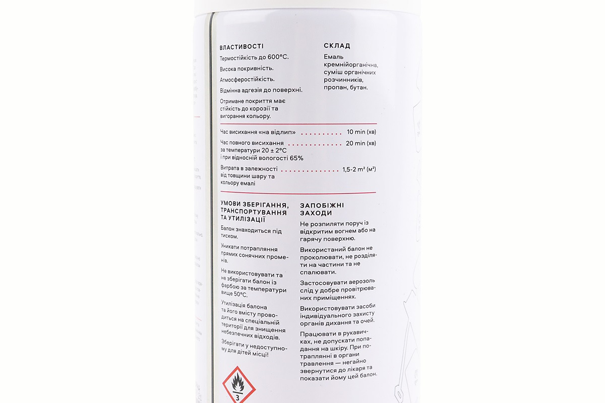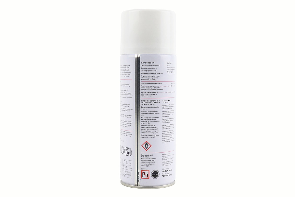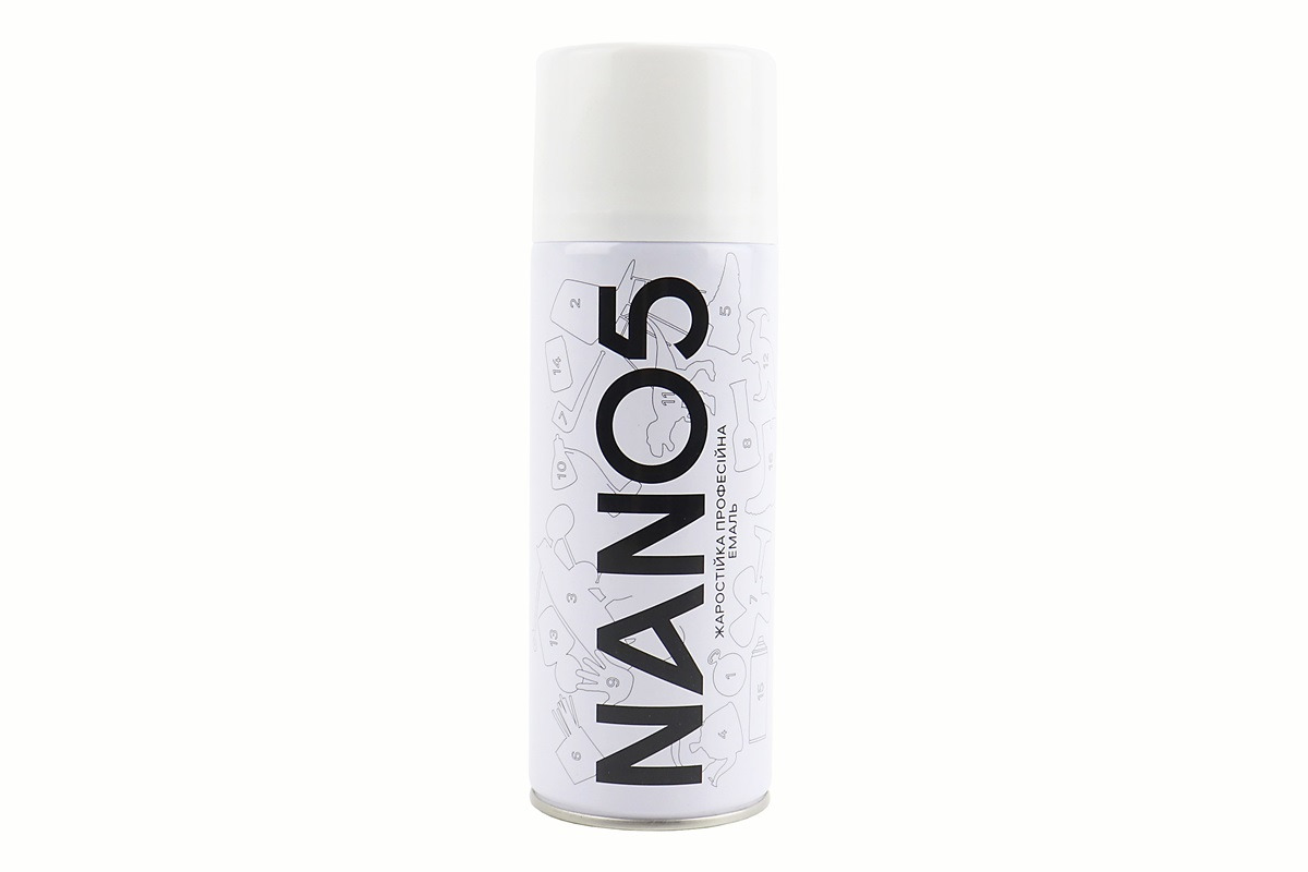 Термостійка емаль аерозоль NANO5 виготовляється на основі кремнійорганічної емалі. До складу входить суміш органічних розчинників, спеціальні присадки та газ пропан-бутан.