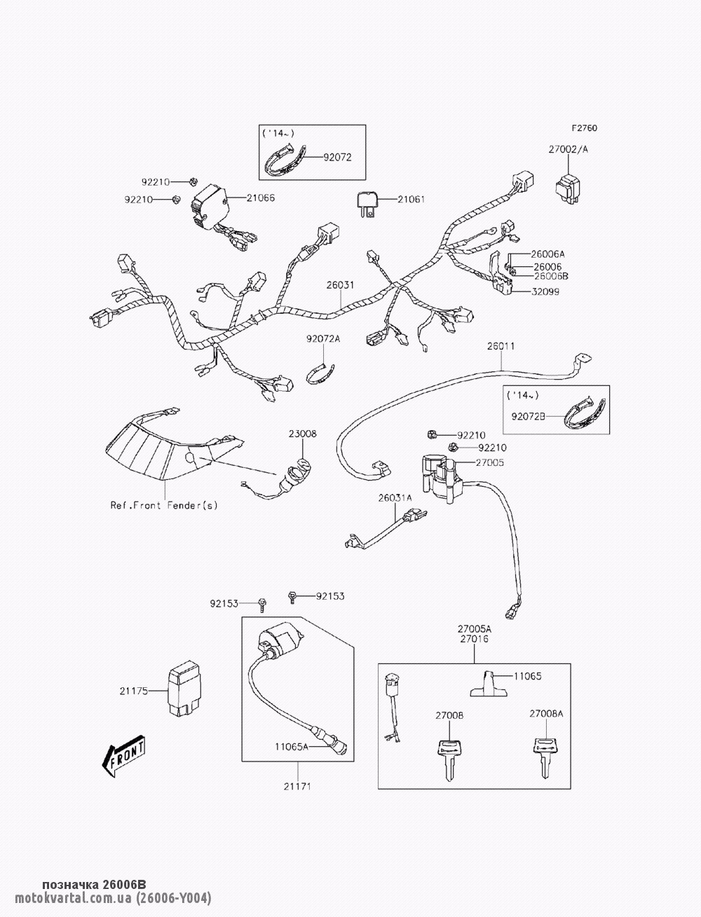 - Квадроцикл (ATV) /2014 / Brute Force 300 (KVF300-CEF) / Chassis electrical equipment