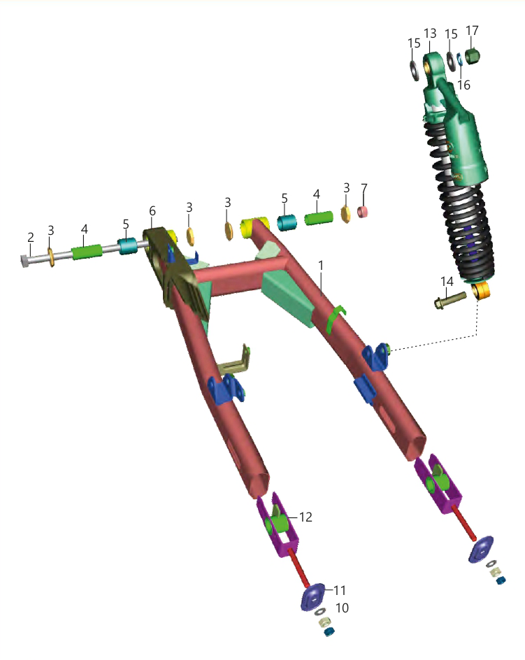 - Pulsar 180 Neon → Маятник / задній амортизатор → позначка на цьому фото: 7