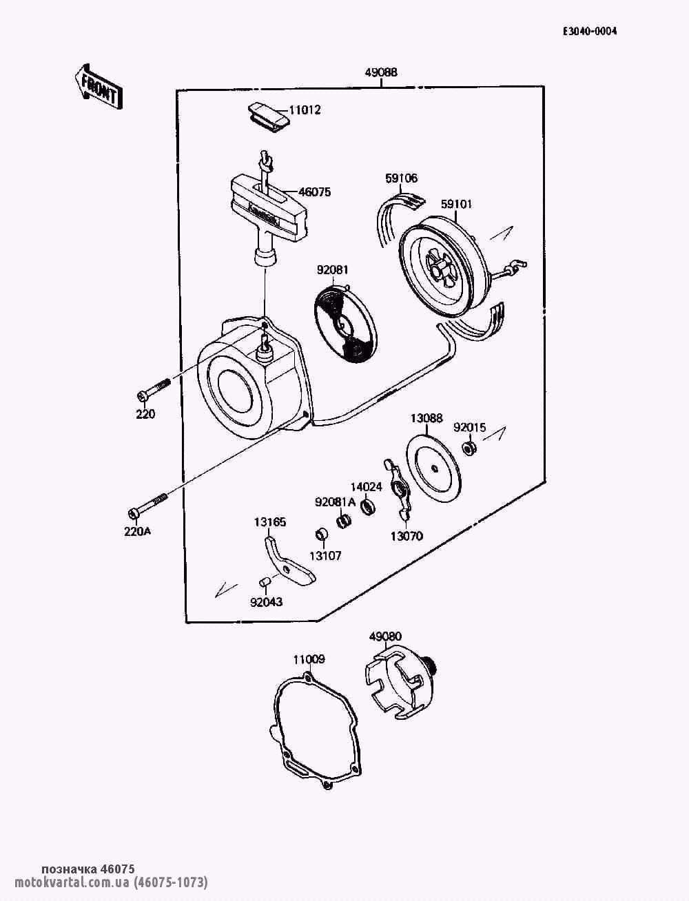 - Квадроцикл (ATV) /2009 / Bayou 250 (KLF250-A9F) / Recoil starter