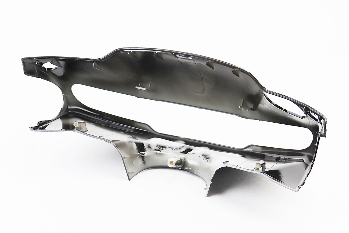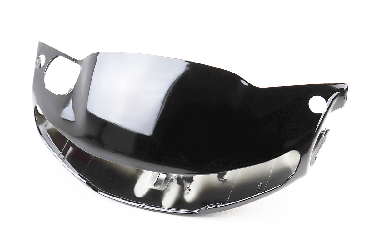 Ця деталь служить верхнім облицювальним кожухом передньої частини керма, вміщує приладову панель (спідометр / індикатори) і закриває механічні вузли в передній частині скутера, надаючи йому закінченого зовнішнього вигляду.