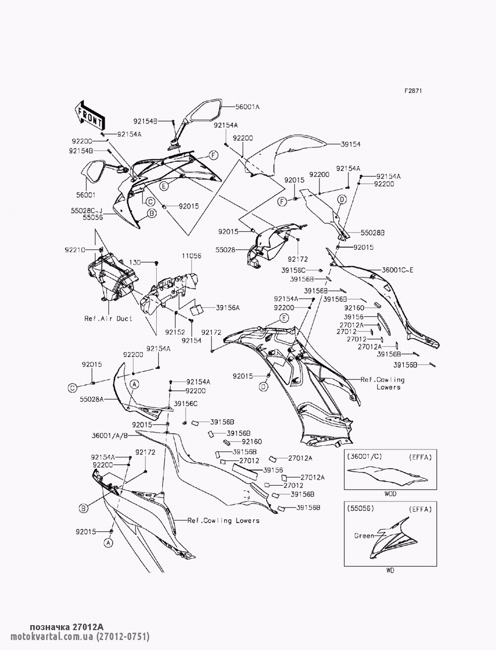 - Мотоцикл /2015 / Ninja ZX-6R 30th Anniversary Edition (ZX636-EFFA) / Cowling