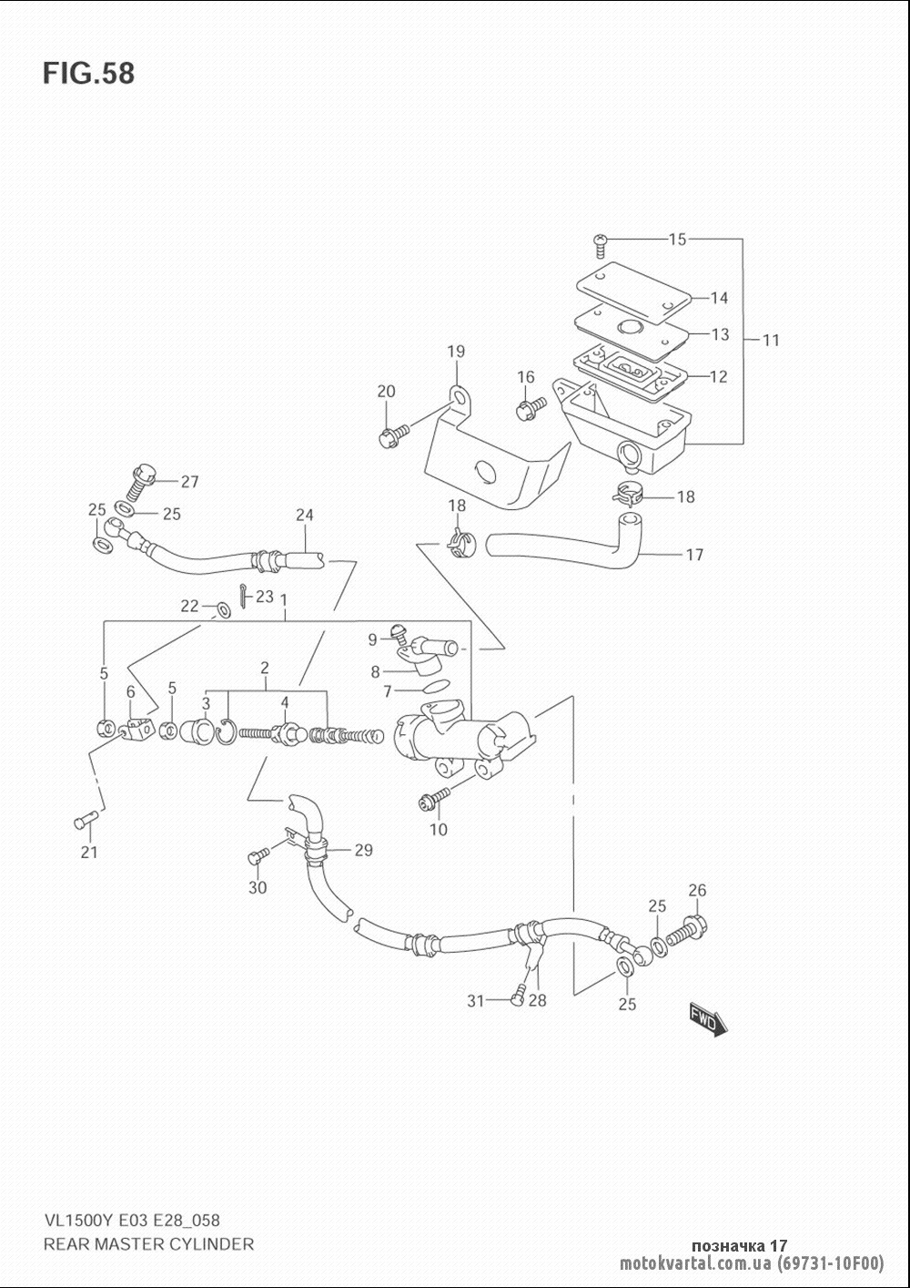 - Мотоцикл / 2003 / VL1500 B INTRUDER / Rear master cylinder (model k2_k3_k4)