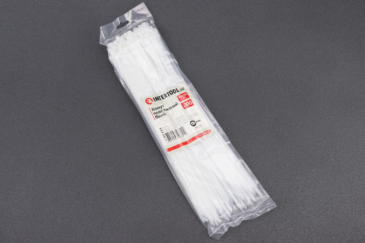 Хомут-стяжка пластикова 4.8x350мм комплект 100шт, білий TC-4835, (INTERTOOL) (2957814)