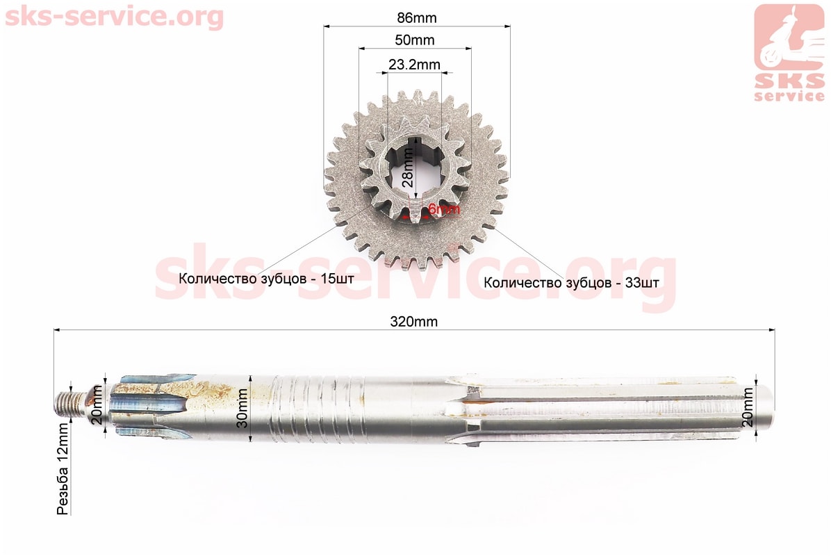 КПП - Вал первинний 320mm+шестерня Z-15x33 81-1 M175/195N (Viper) (2785389)