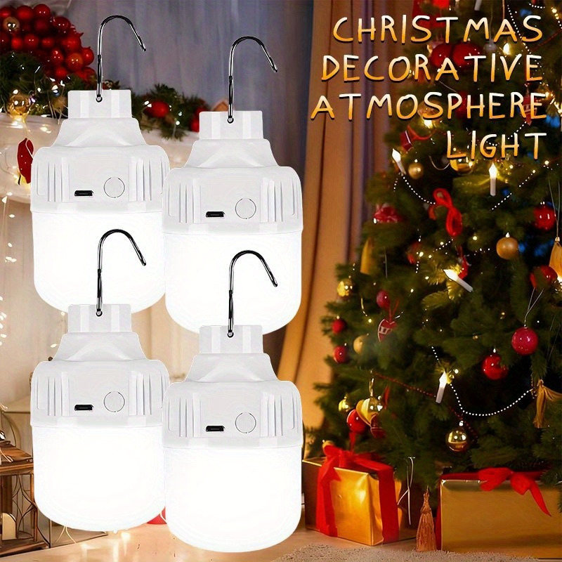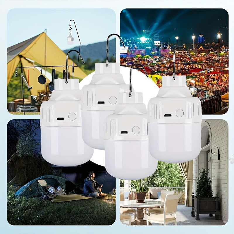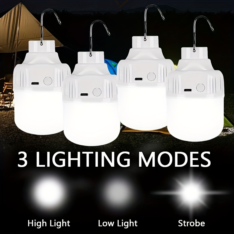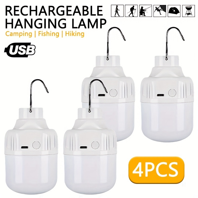 Набір з 4 портативних USB-ламп — універсальні міні-ліхтарі для дому та кемпінгу. Оснащені гачком для підвішування та працюють у 3 режимах світла, що робить їх ідеальними для аварійного освітлення, нічного читання, ринків, кіосків або ремонту. Легкі та компактні, зручні для перенесення та використання у будь-яких умовах.
