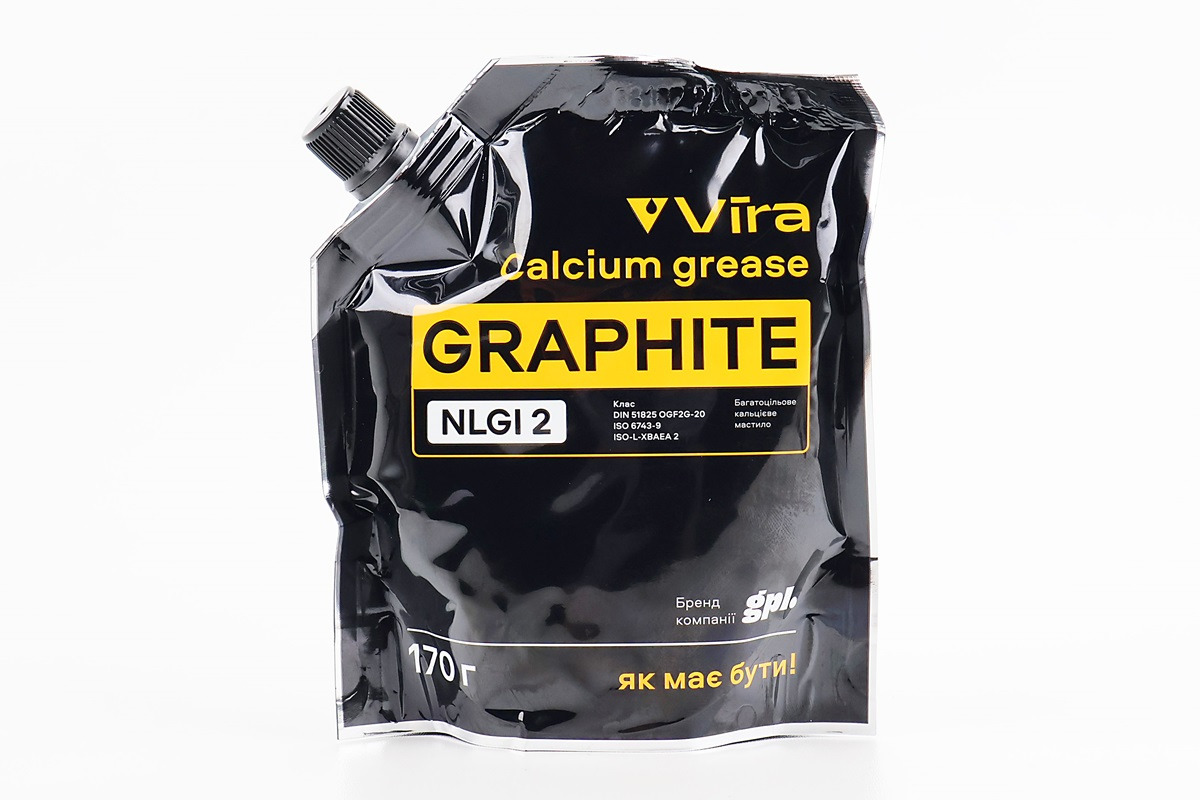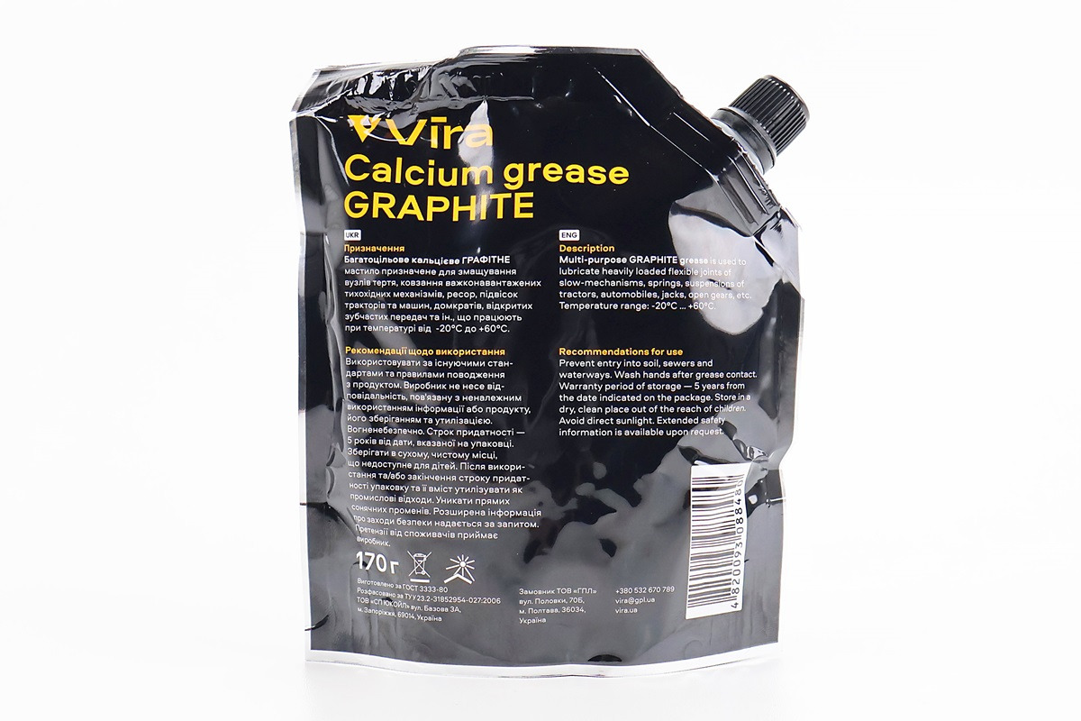 Мастило універсальне VIRA Graphite пластичне гравфітне чорне проводиться на основі нафтової оливи високої в'язкості, загущеною за особливою технологією кальцієвим милом. До складу входять графіти та облагороджуючі присадки.