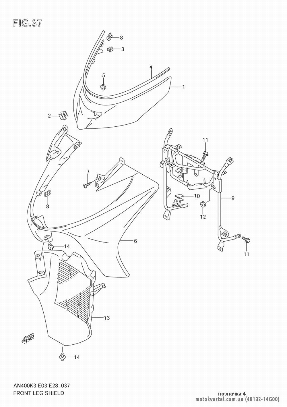 - Скутер / 2004 / AN400S / Front leg shield (model k3_k4)