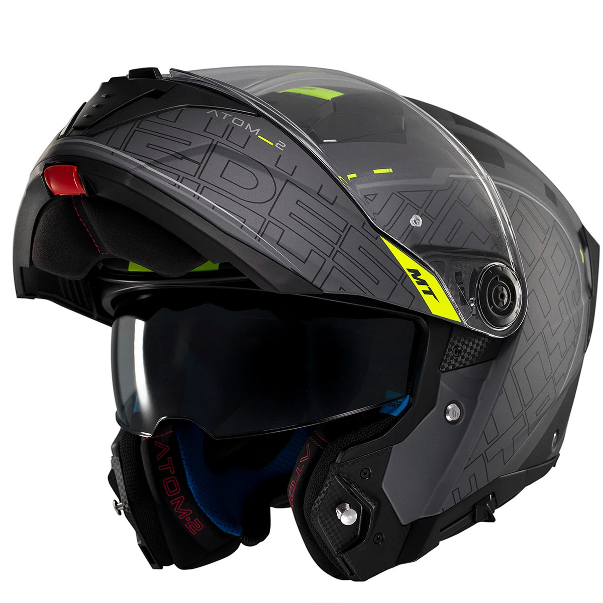 Нове покоління популярного модуляра MT Atom SV, що відповідає новим європейським нормам безпеки ECE 22.06, встановленим у 2022 році, і перевищує їх. Модель отримала покращене внутрішнє оздоблення з ще кращою шумоізоляцією, новий візор V-35 з новим ущільненням та замком на кнопці зпереду, що унеможливлює просочення води чи холодного повітря. Вентитляція стала трошки сильнішою. Шолом став ще кращим за попередню версію і зараз лишається найкращим модуляром в цьому сегменті.