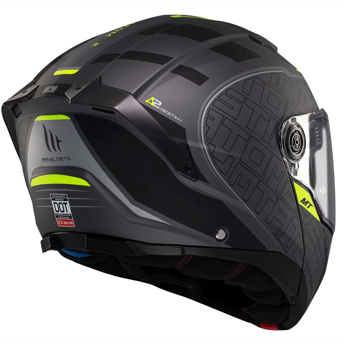 Нове покоління популярного модуляра MT Atom SV, що відповідає новим європейським нормам безпеки ECE 22.06, встановленим у 2022 році, і перевищує їх. Модель отримала покращене внутрішнє оздоблення з ще кращою шумоізоляцією, новий візор V-35 з новим ущільненням та замком на кнопці зпереду, що унеможливлює просочення води чи холодного повітря. Вентитляція стала трошки сильнішою. Шолом став ще кращим за попередню версію і зараз лишається найкращим модуляром в цьому сегменті.