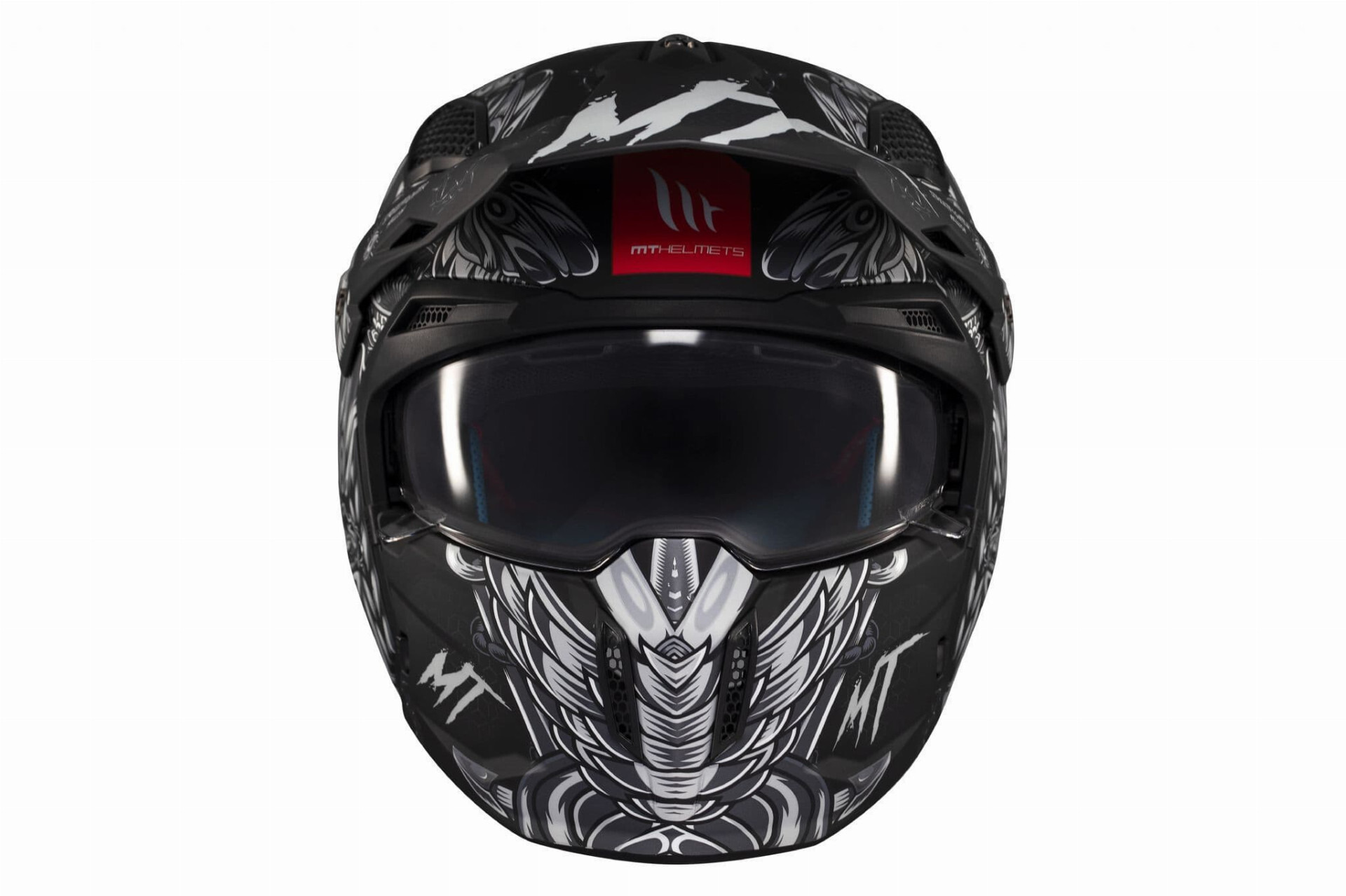 Модель творена на основі тріального мотошолома District від MT Helmets. Шолом оснащений з'ємним козирком та підборіддям, роль візора виконують сонцезахисні окуляри. Модель призначена для невеликих прохватів по місту за хорошої погоди на крутому кафешнику або стріті з футуристичним дизайном. Цей шолом, як і інші конкуренти цього класу, не дасть Вам високого ступеня захисту та комфорту. Він створений для інших цілей-для понтів, якщо хочете. Тихі, безпечні та комфортні - це модуляри та інтеграли! Не слухайте продавців які Вам втиратимуть що це універсальний шолом!