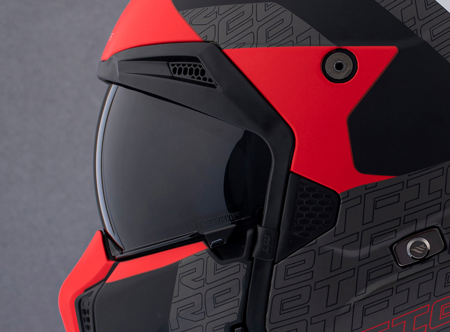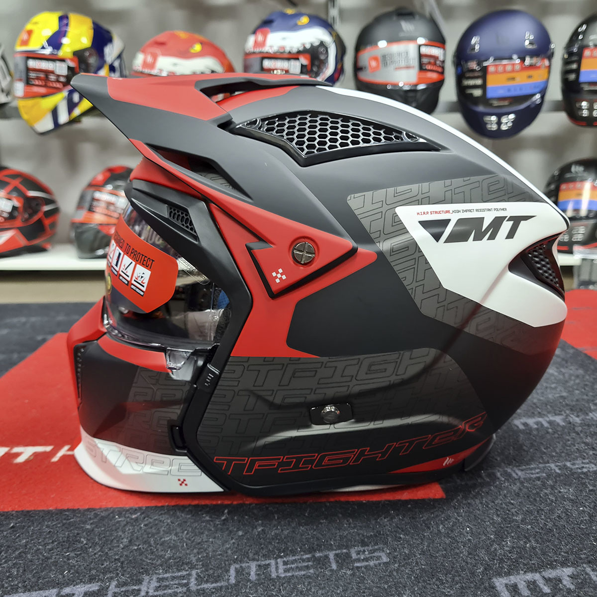 Модель творена на основі тріального мотошолома District від MT Helmets. Шолом оснащений з'ємним козирком та підборіддям, роль візора виконують сонцезахисні окуляри. Модель призначена для невеликих прохватів по місту за хорошої погоди на крутому кафешнику або стріті з футуристичним дизайном. Цей шолом, як і інші конкуренти цього класу, не дасть Вам високого ступеня захисту та комфорту. Він створений для інших цілей-для понтів, якщо хочете. Тихі, безпечні та комфортні - це модуляри та інтеграли! Не слухайте продавців які Вам втиратимуть що це універсальний шолом!