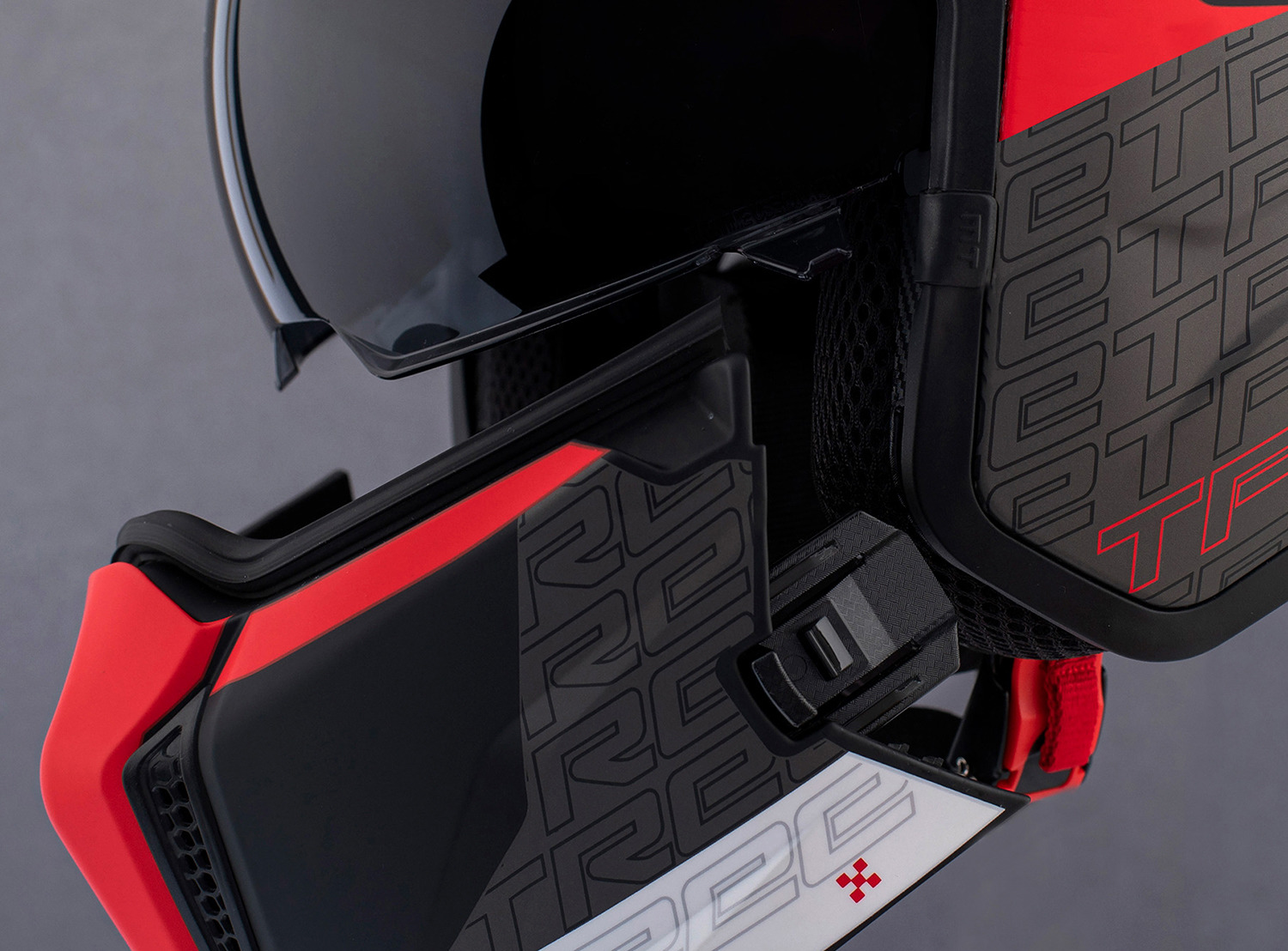Оболонка шолома з HIRP полімерного матеріалу (полікарбонат) відмінно поглинає удар і має високі характеристики міцності, до якої пристібається підборіддя з фронтальною вентиляцією з такого ж полікарбонату, який перетворює шолом на зразок інтегралу та захищає обличчя від вітру, пилу та комах.