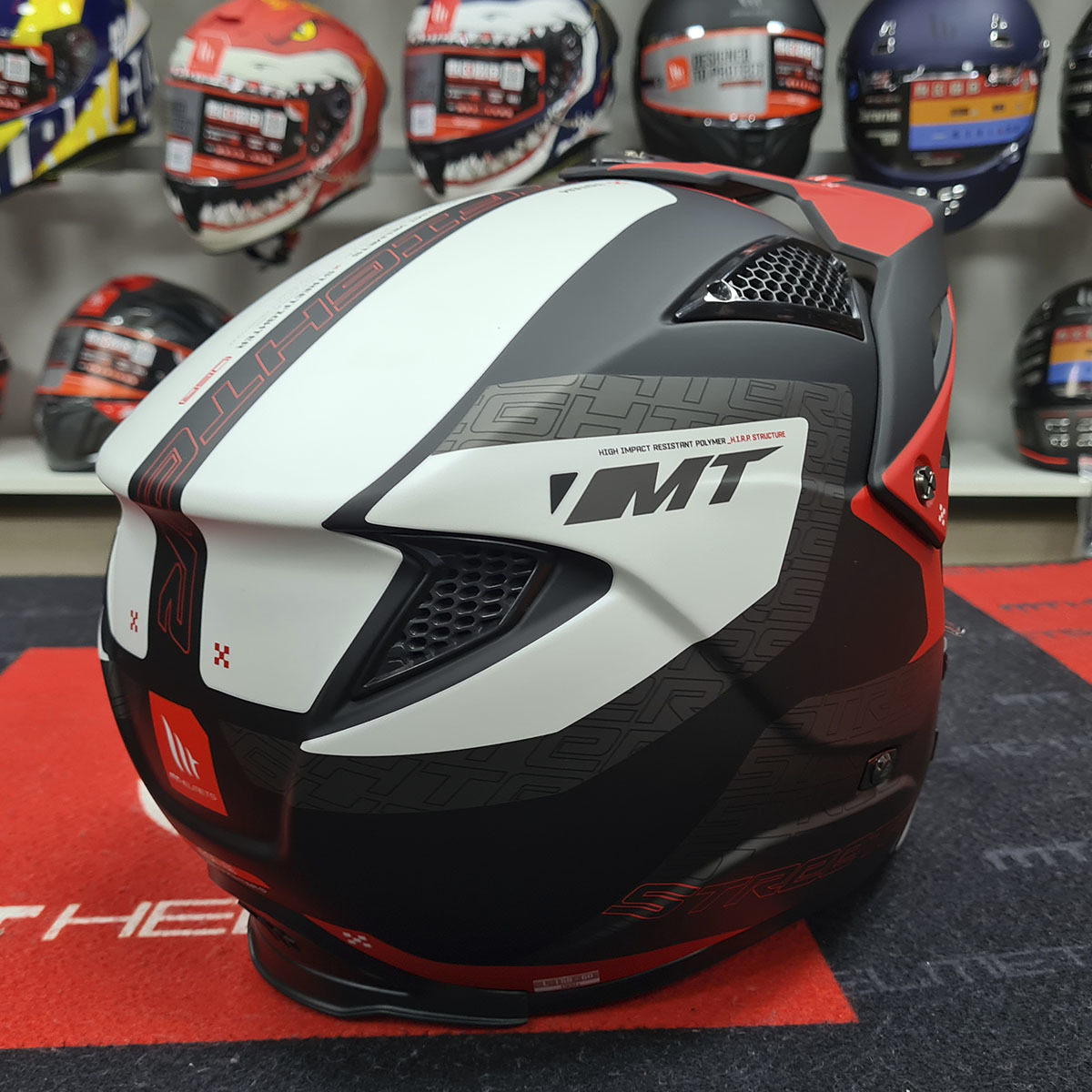 Мотошолом MT Streetfigther оснащений чотиризонною вентиляцією та обдуванням окулярів для запобігання їх запотіванню. Внутрішнє оздоблення повністю знімається для прання та може бути замінене на нове при потребі.