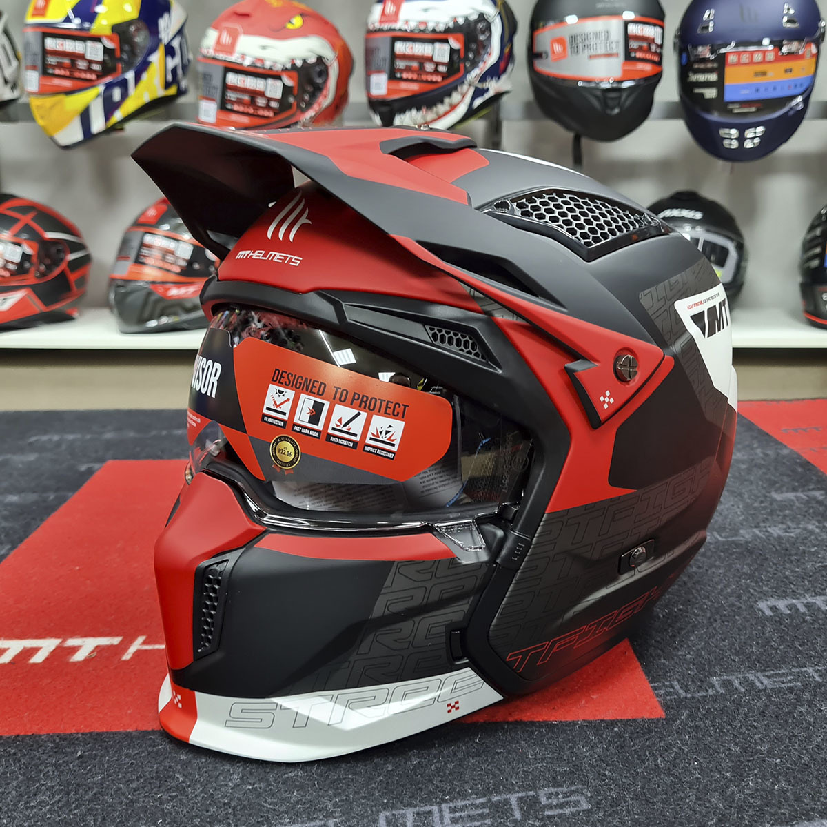Модель творена на основі тріального мотошолома District від MT Helmets. Шолом оснащений з'ємним козирком та підборіддям, роль візора виконують сонцезахисні окуляри. Модель призначена для невеликих прохватів по місту за хорошої погоди на крутому кафешнику або стріті з футуристичним дизайном. Цей шолом, як і інші конкуренти цього класу, не дасть Вам високого ступеня захисту та комфорту. Він створений для інших цілей-для понтів, якщо хочете. Тихі, безпечні та комфортні - це модуляри та інтеграли! Не слухайте продавців які Вам втиратимуть що це універсальний шолом!