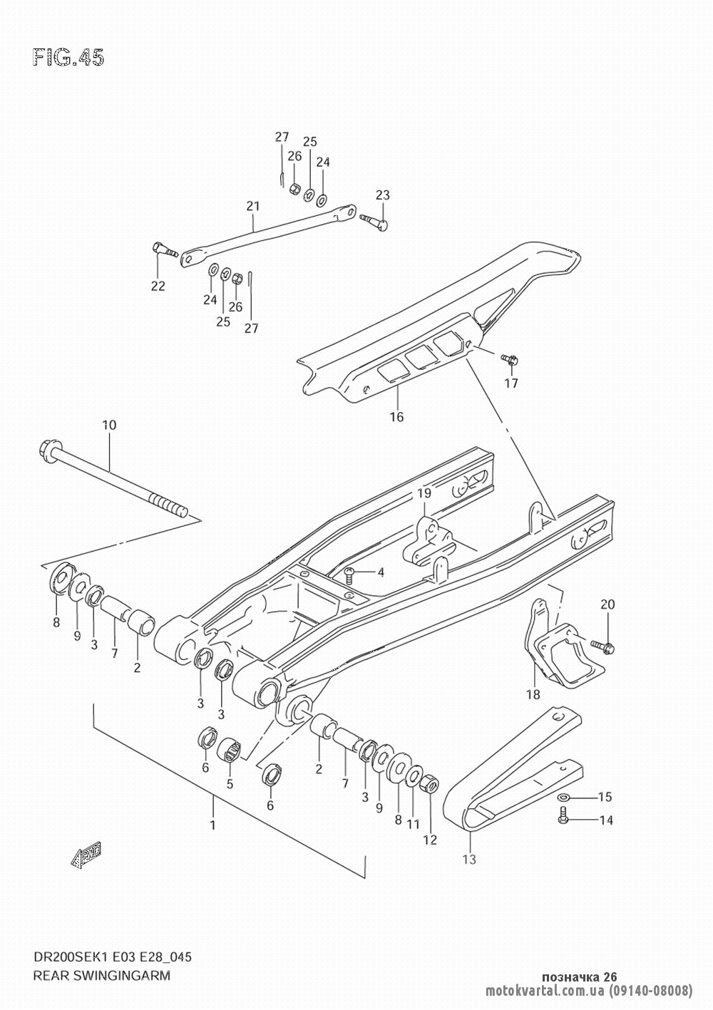 - Мотоцикл / 2008 / DR200SE / Rear swinging arm