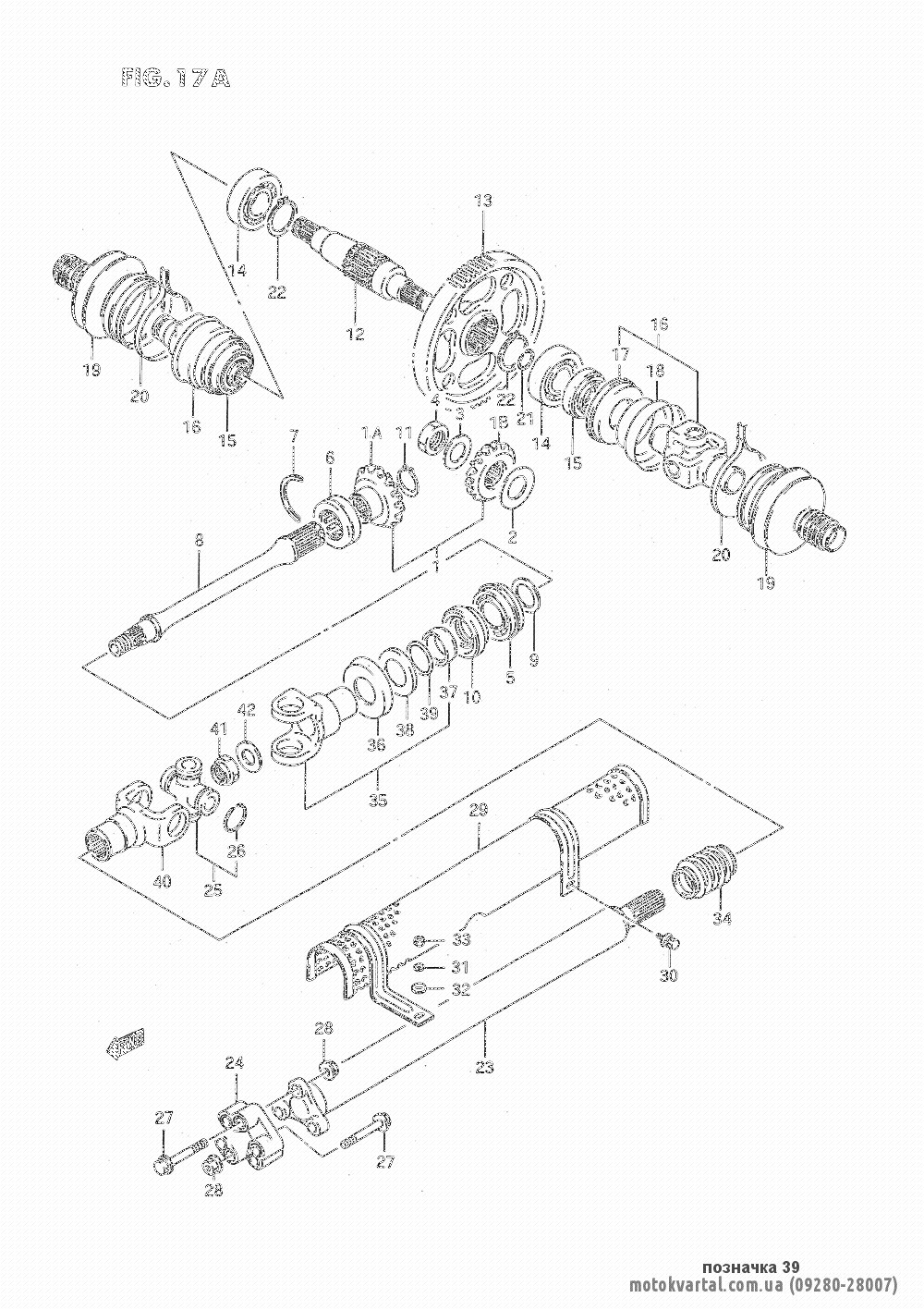 - Квадроцикл (ATV) / 1995 / LT-4WD Quad Runner / Secondary gear - propeller shaft (model h_j_k_l_m_n_p)