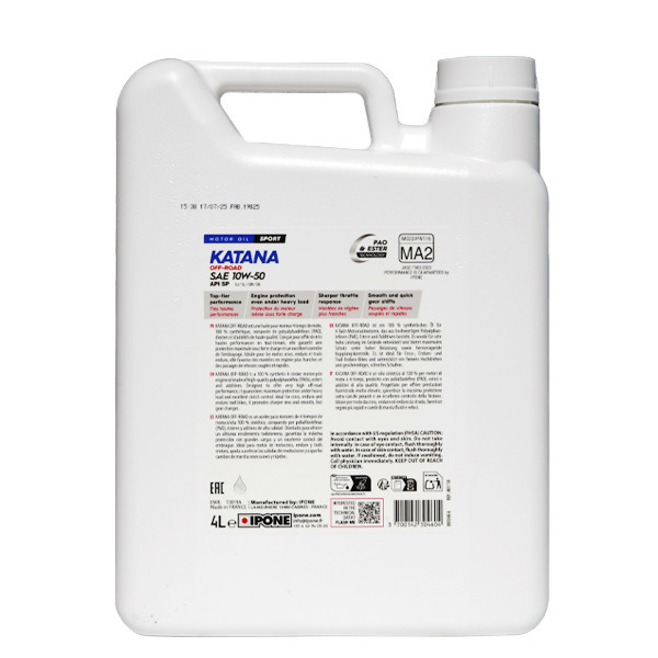 Нова версія надзвичайно популярного масла IPONE, яка приходить на заміну Full Power Katana Off Road 10W50. Це таке ж повністю синтетичне масло з ПАО та складними ефірами в основі, і теж з технологією Speed&EasyShift, яка робить перемикання передач м’яким і швидким. Але нова позашляхова Katana – це навіть краща Katana, тому що тепер відповідає більш високому стандарту якості API SP.