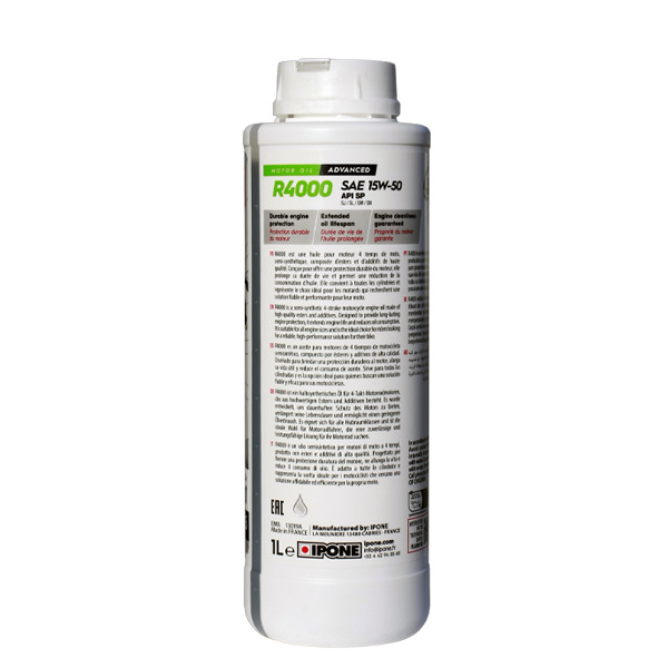 Моторне масло для мотоциклів на синтетичній основі, що прийшло на заміну R4000 RS 15W50. Новий продукт втратив дві літери в назві (тепер без RS), але отримав на два рівні (!) вищу класифікацію API SP. Містить в своїй основі складні ефіри та високоякісні присадки для надійного захисту двигуна та запобігання відкладенням і нагару. Підходить для будь-яких умов експлуатації, окрім спортивних.