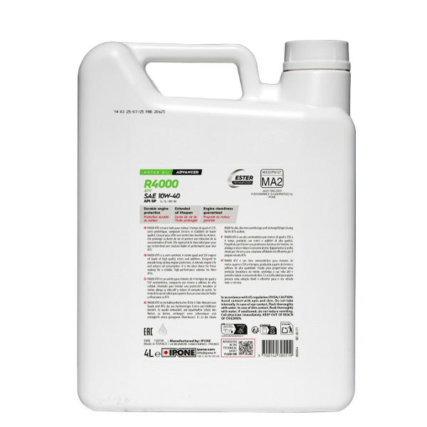 Масло R4000 ATV 10W40 гарантує надійний захист та чистоту двигуна за будь-яких навантажень. Це масло створювалось з акцентом на спортивному використанні у несприятливих умовах: вологому та пильному середовищі. IPONE R4000 ATV забезпечить високу продуктивність вашого силового агрегату в будь-якій дорожній, а точніше без-дорожній ситуації.