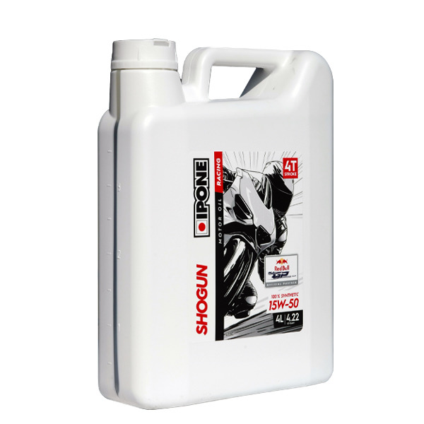 IPONE Shogun 15W50 – 100% синтетичне моторне масло для 4-тактних мотоциклів, створене з базового масла та присадок найвищого можливого рівня. Це чорний пояс у світі мастильних матеріалів для мотоспорту.