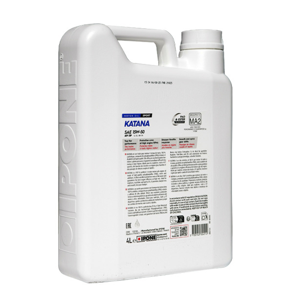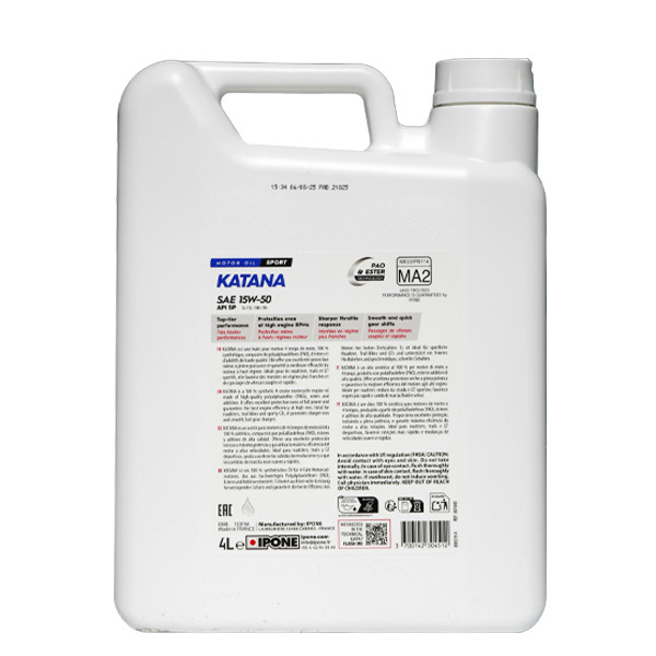 Нова версія найбільш популярного масла IPONE, яка приходить на заміну Full Power Katana 15W50. Як і раніше, це 100%-на синтетика з ефірами (естерами) з технологією Speed&EasyShift, яка робить перемикання передач м’яким і швидким. Але нова Katana стає навіть кращою, тому що тепер відповідає більш жорстким вимогам специфікації API SP.
