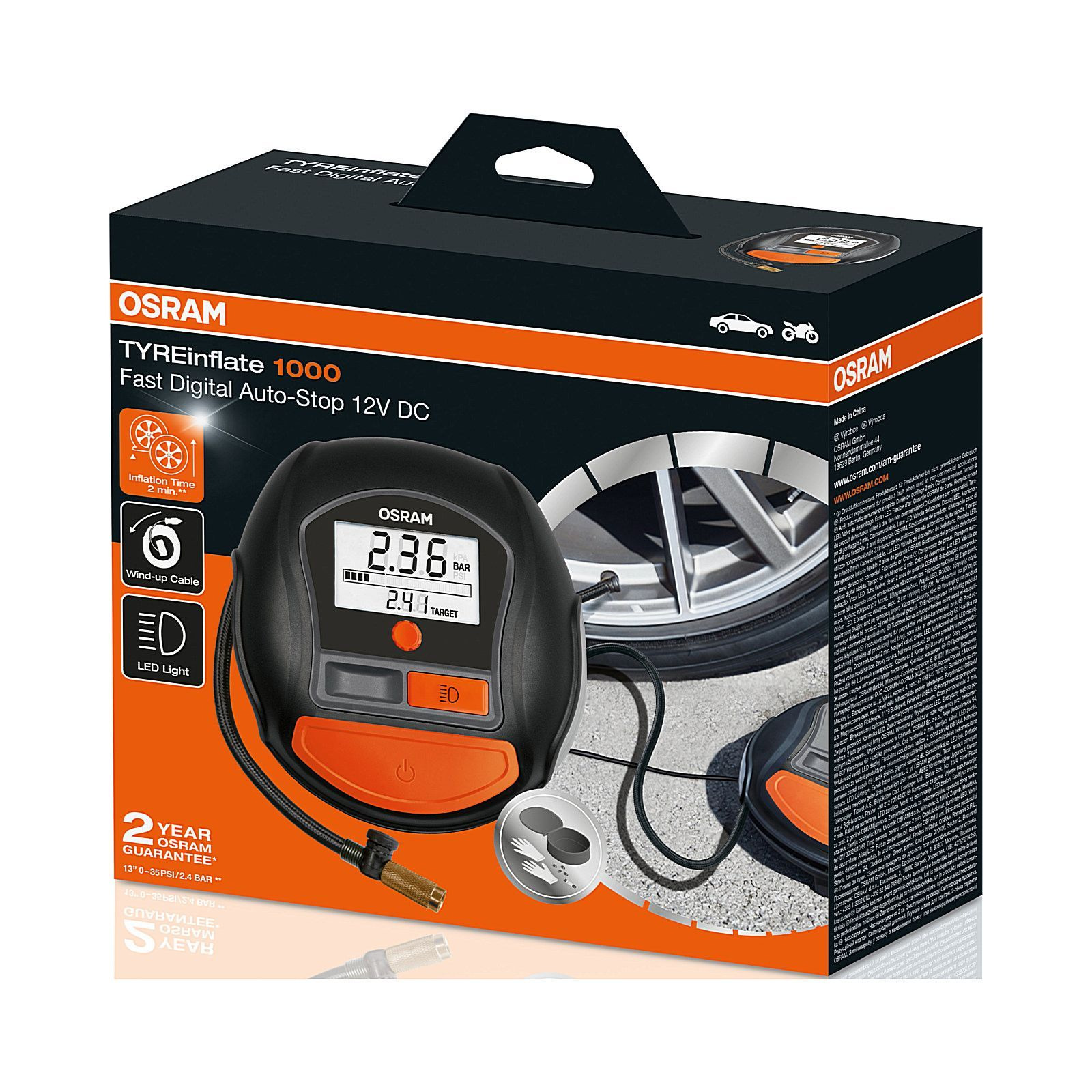 Компресор Osram OTI1000 призначений для уникнення випадкових ушкоджень, зокрема пробиття або спущеного колеса.