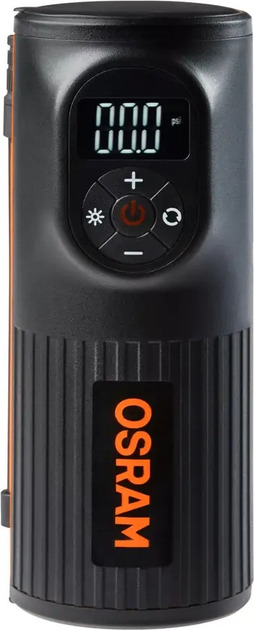 Компактний мобільний компресор, що перезаряджається OSRAM TYREinflate 2000 - це мобільний компресор, що перезаряджається, з цифровим дисплеєм з підсвічуванням для більш простого і точного вимірювання тиску і накачування шин. Одиниці виміру PSI, kPa, bar. Незамінний пристрій транспортного засобу для тих, кому важлива безпечне і комфортне використання не тільки для автомобільних шин, але також може використовуватися для накачування шин велосипедів, скутерів та мотоциклів. Без проблем піднімає тиск у шинах до необхідного рівня за рахунок максимального максимального тиску, який становить 8.3 атм. Досить швидко накачає необхідне колесо, що спустилося, за допомогою своєї продуктивності. Компресор із цифровим дисплеєм, що дозволить орієнтуватися на показники та з легкістю піднімати тиск до потрібного рівня. Автоматичне відключення накачування при бажаному тиску повітря. Компресор OSRAM TYREinflate 2000 має внутрішню пам'ять, і завдяки функції пам'яті можна запрограмувати та зберегти до чотирьох різних значень тиску для різних шин. Він також оснащений функцією автоматичної зупинки. В комплект входить кронштейн для кріплення та зберігання на велосипеді. Завдяки функції powerbank також можна використовувати як зарядний пристрій для електронних пристроїв. Акумуляторна батарея 5200 мАг. Крім того, вбудований ліхтарик може забезпечити освітлення вночі або в умовах поганого освітлення.