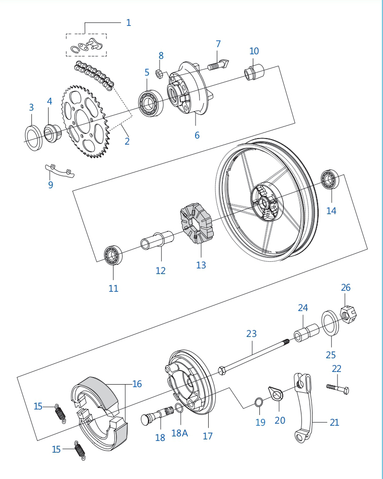 - Pulsar NS125 → Задня ступиця → позначка на цьому фото: 17