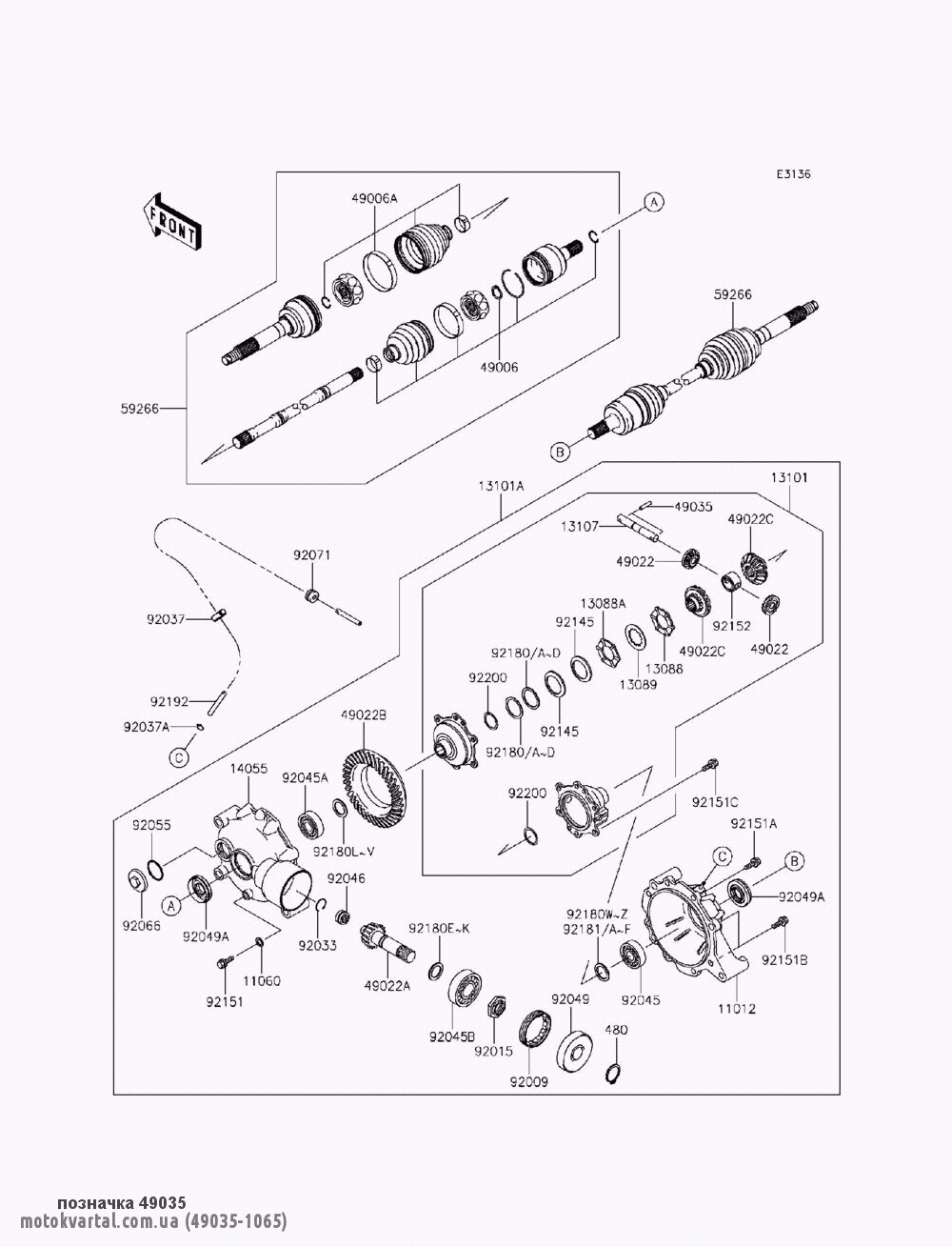 - Всюдихід (UTV) /2012 / Mule 610 4x4 XC Realtree APG HD (KAF400-ECF) / Drive shaft-front