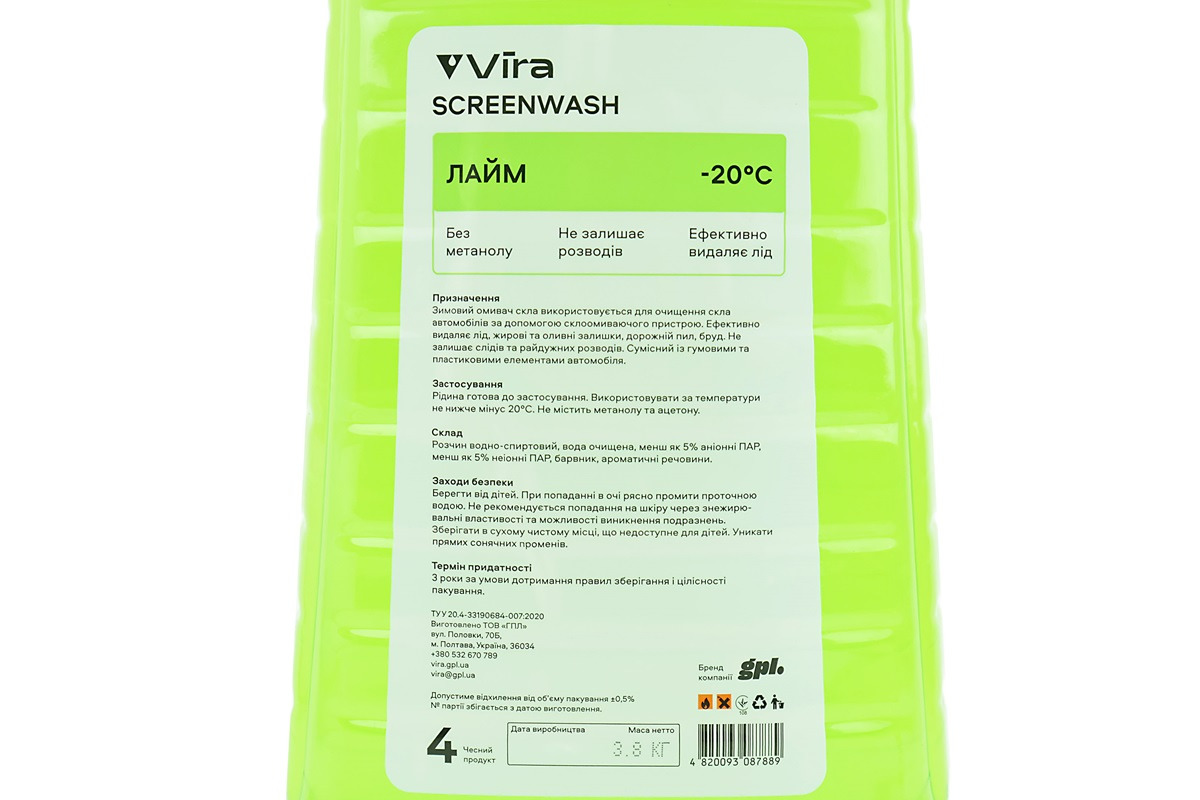 Зимовий омивач скла. Використовується для очищення скла автомобілів за допомогою склоомиваючого пристрою. Ефективно видаляє забруднення та дорожній пил. Продукт готовий до застосування при температурі -20°C. Не містить метанолу.