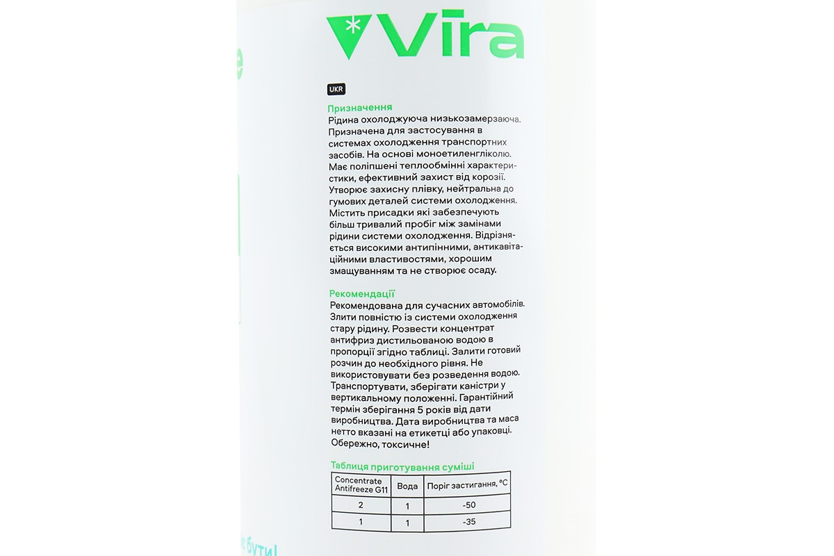 Рідина охолоджуюча Vira концентрат -35°C 1:1 АНТИФРИЗ G11, зелена 1.5kg (3035948)