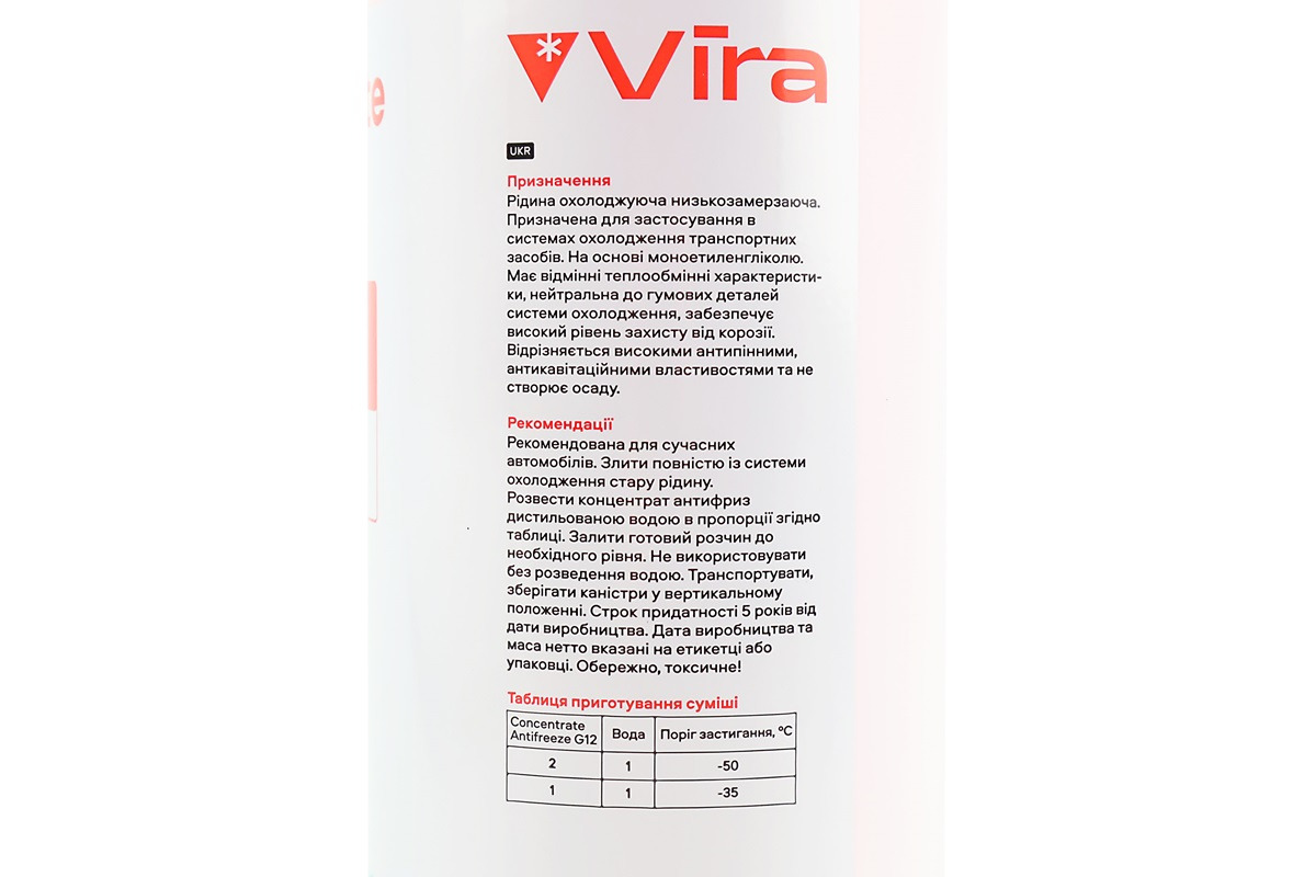 Рідина охолоджуюча Vira концентрат -35°C 1:1 АНТИФРИЗ G12, червона 1.5kg (3035950)